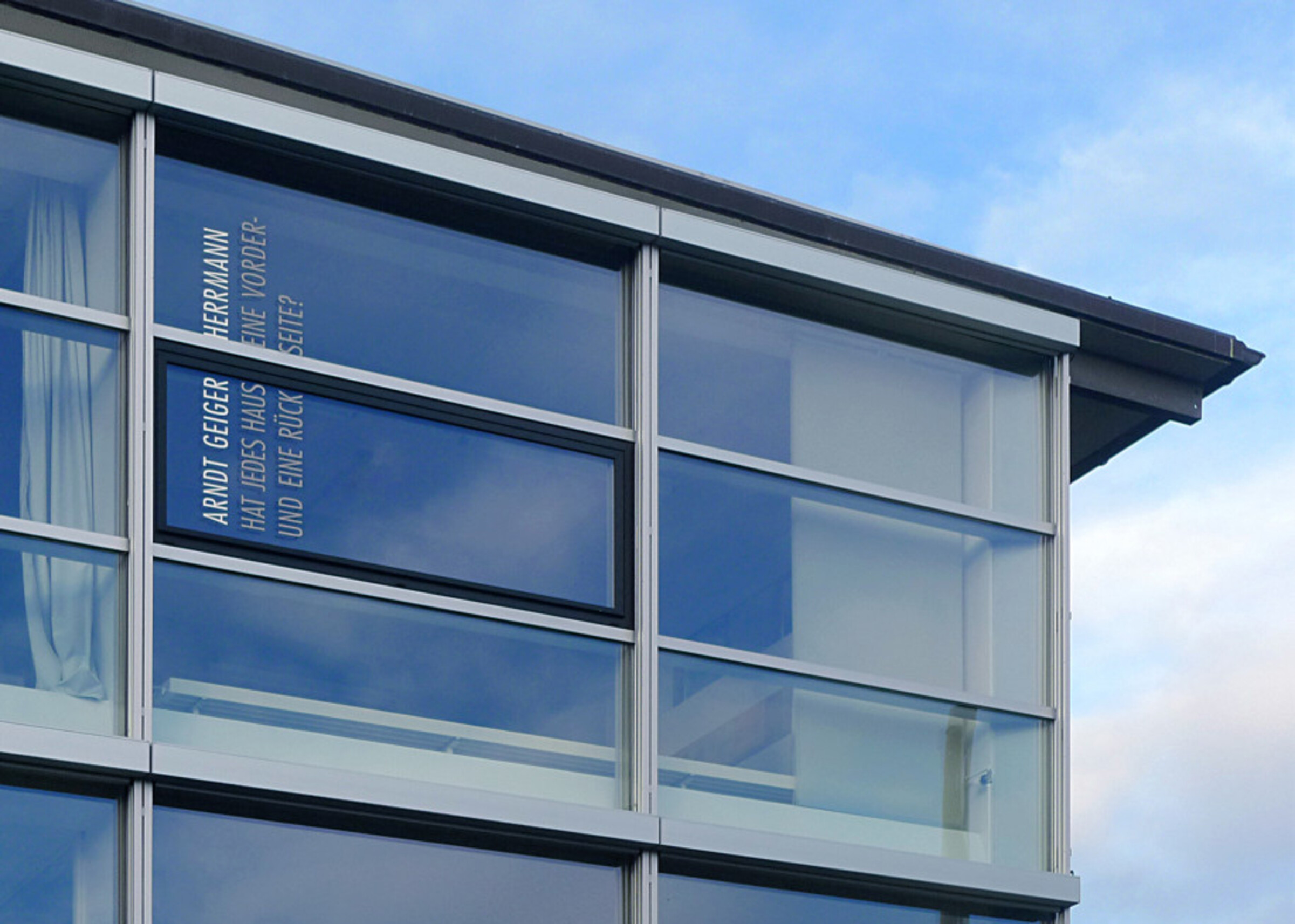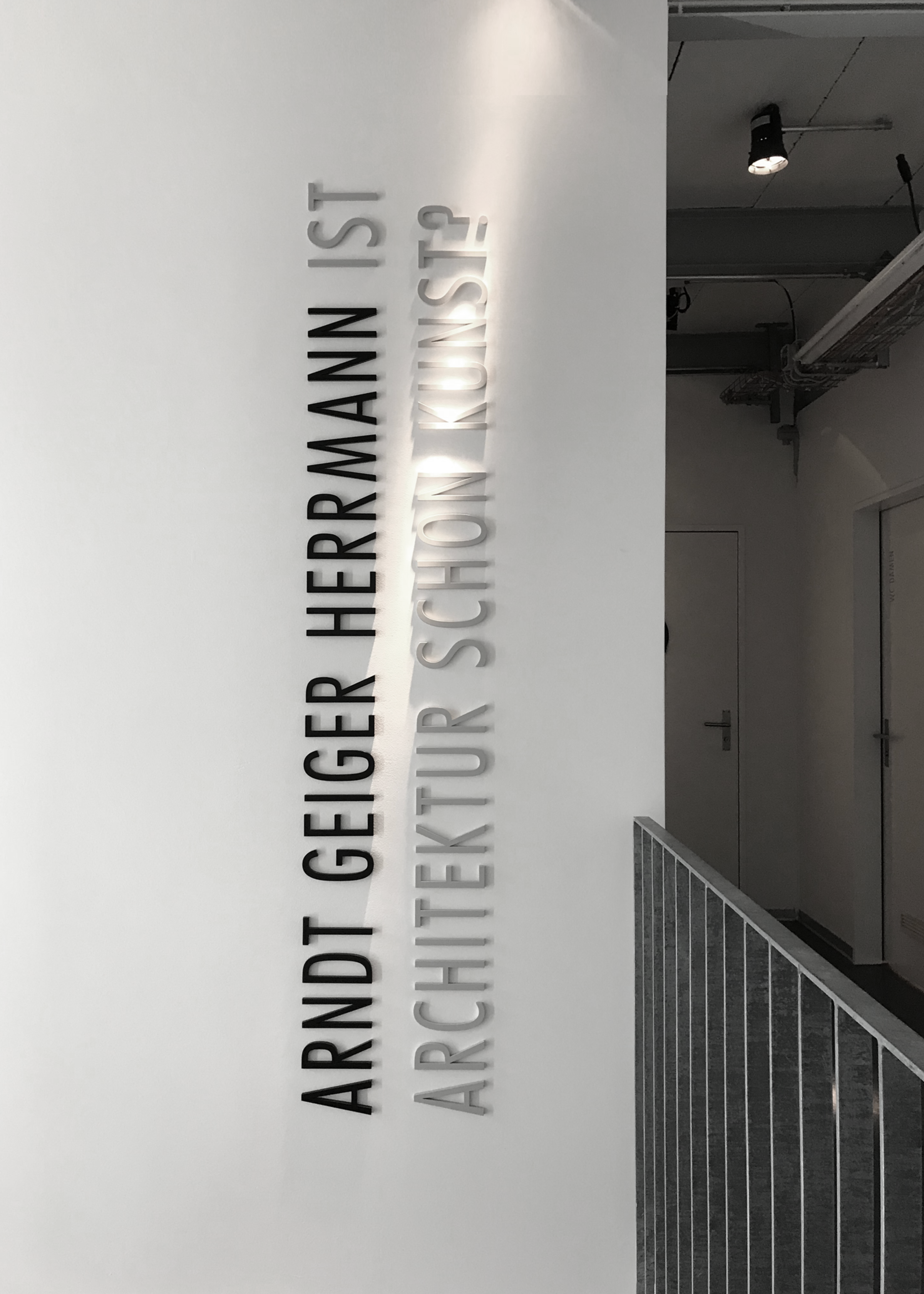 Während die Marke Arndt Geiger Herrmann die Konstante bildet, laden die wechselnden Fragen die Betrachter:innen zum Nachdenken ein – sei es auf dem Skizzenblock, der Visitenkarte oder auf den Bauplänen. Nicht zuletzt aber stehen die Fragen symbolisch auch für den Anspruch, die Haltung und Herangehensweise des Architekturbüros: Bei Arndt Geiger Herrmann werden die Dinge stets neu hinterfragt und betrachtet.