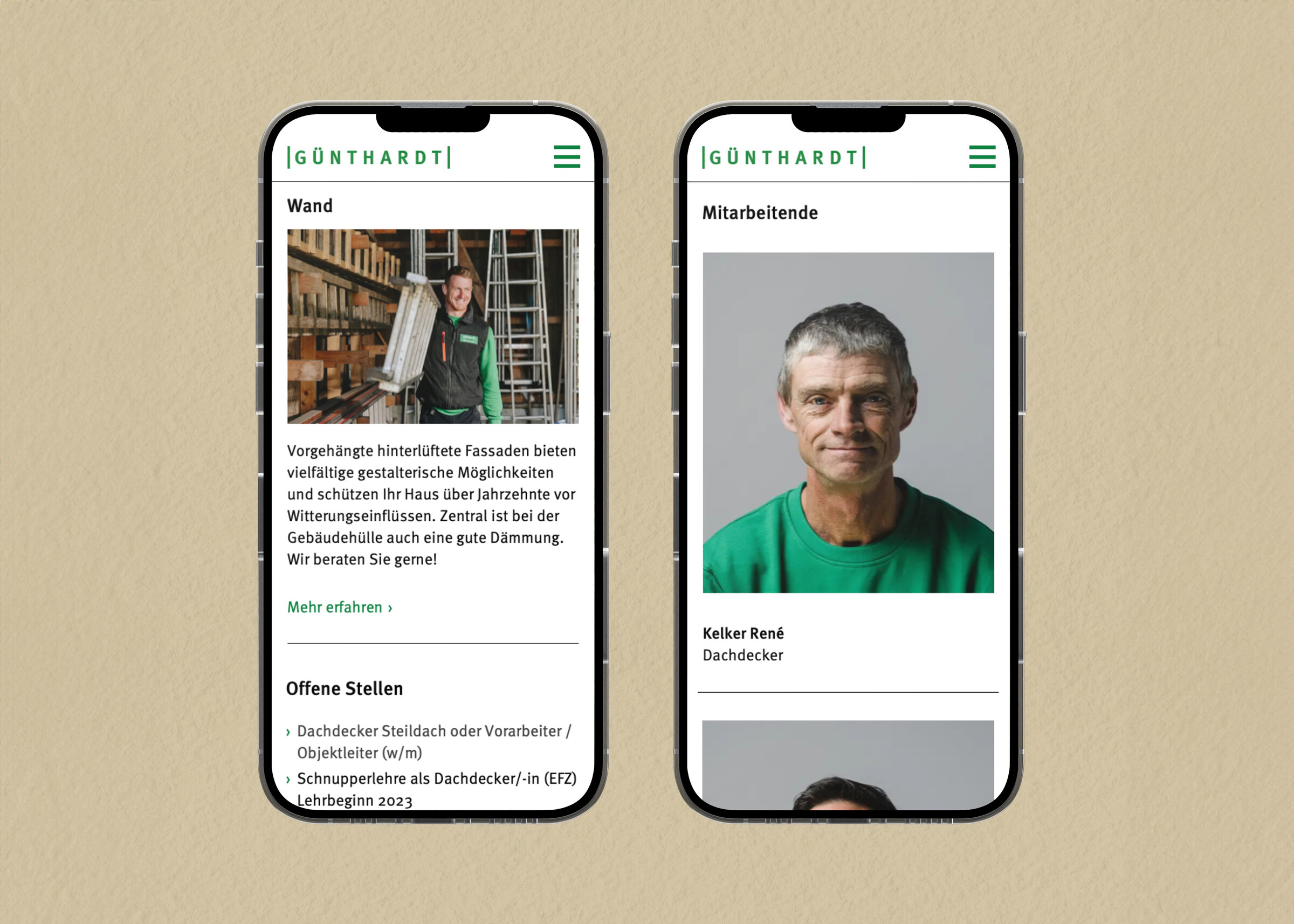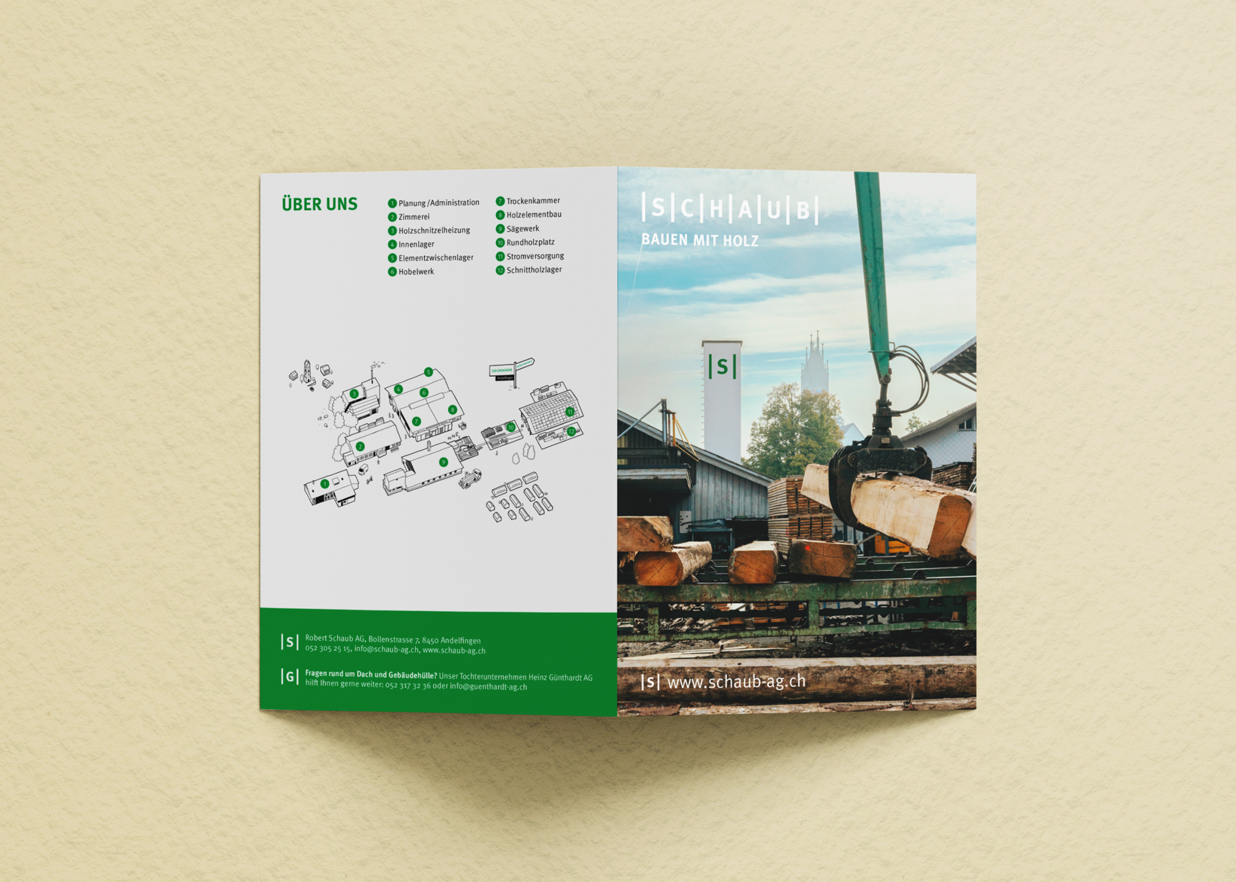 Basis für die klare, aktuelle Markenidentität war die Beantwortung von Schlüsselfragen zur Unternehmensstruktur des Holzbaubetriebs Robert Schaub AG und der Dachdecker-Tochterfirma Günthardt AG.