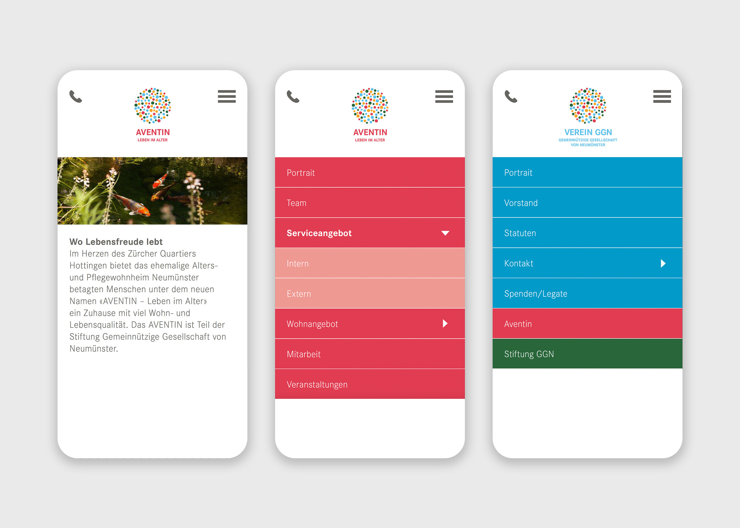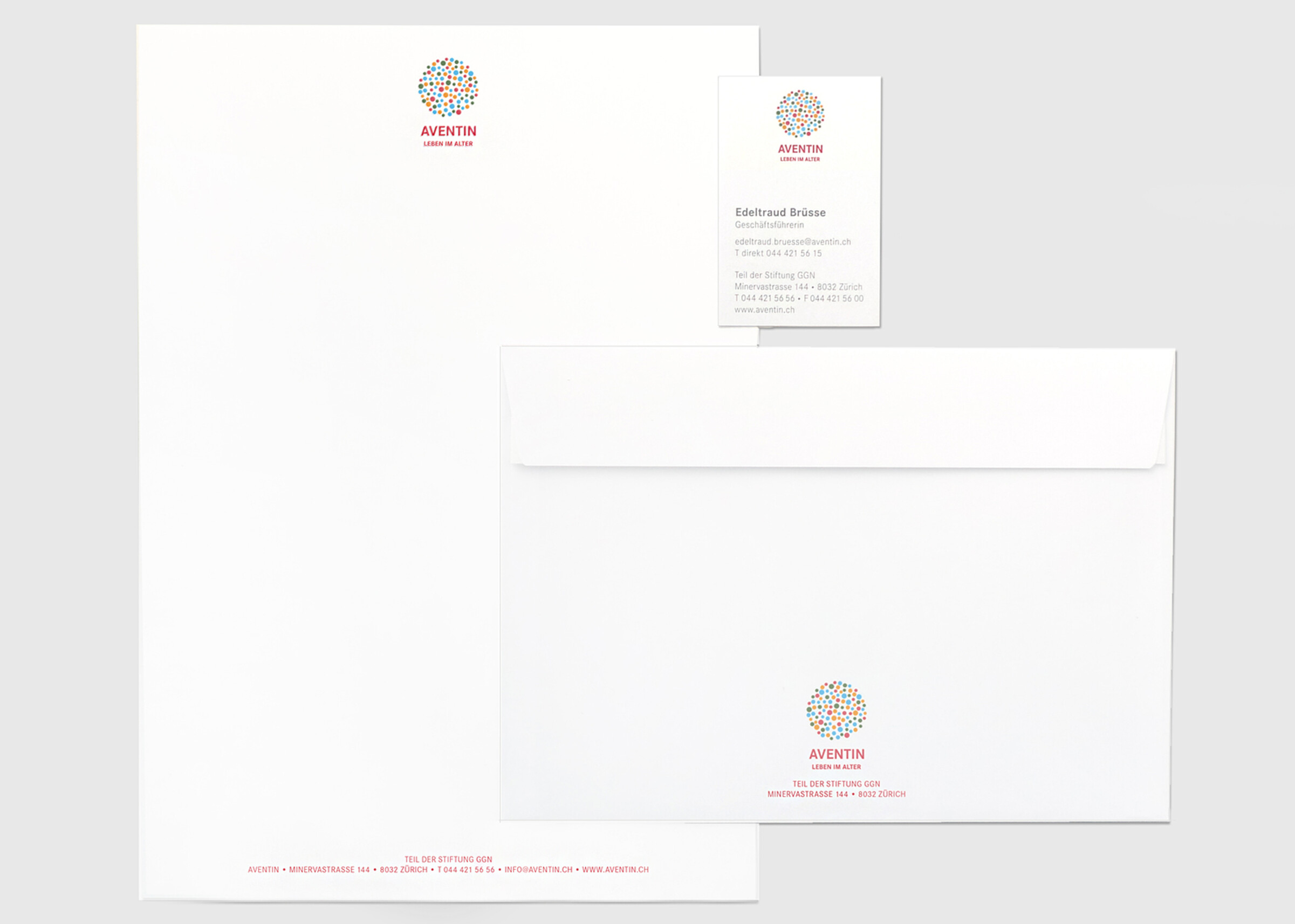 Als Erstes klärten und überarbeiteten wir die Markenarchitektur und fassten weitere Ableger der Stiftung – eine Immobilien-Verwaltung, eine Waisenstiftung und Fonds, die finanziell schlecht situierte Auszubildende unterstützen – zusammen. Auf dieser Basis entwickelten wir eine visuelle Identität für die drei Teilbereiche Stiftung, Verein und Alterszentrum. Optisch sind sie durch ein gemeinsames Bildzeichen verbunden und im Deskriptor verbal ausgewiesen. Ein aus den Logofarben abgeleiteter Farbcode identifiziert die Absender.