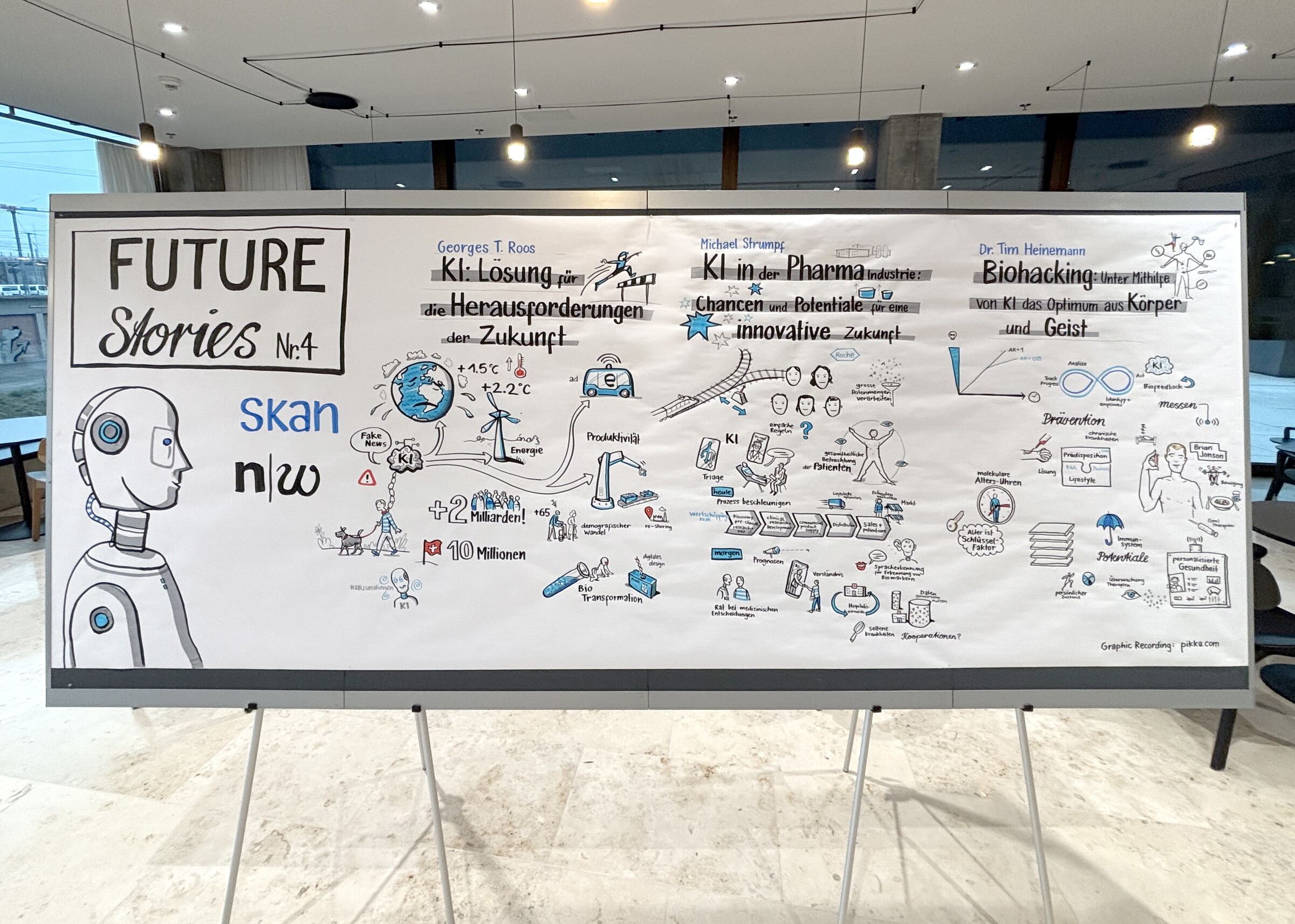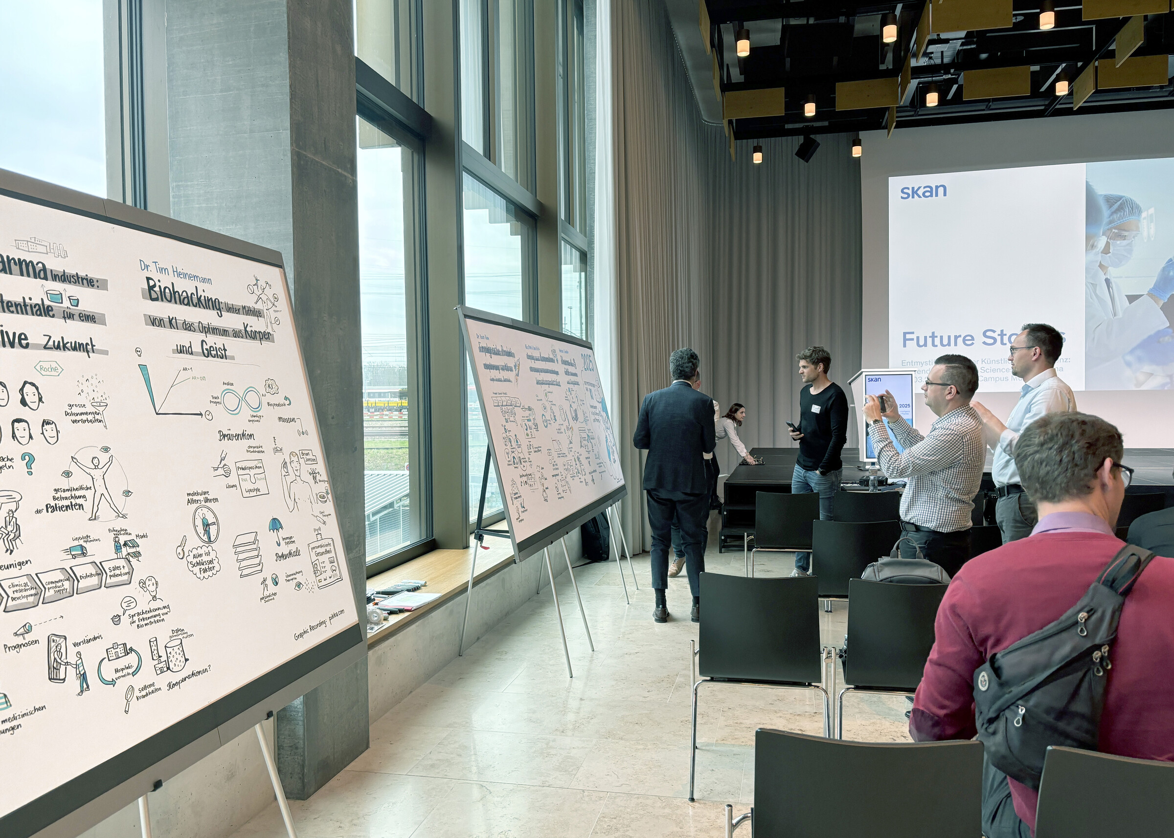 Die Veranstaltung wurde von Skan gemeinsam mit der FHNW als Forschungspartner organisiert. Während der Keynotes haben wir Live-Visualisierungen angefertigt, die zentrale Inhalte und Impulse der Vorträge visuell festhielten.