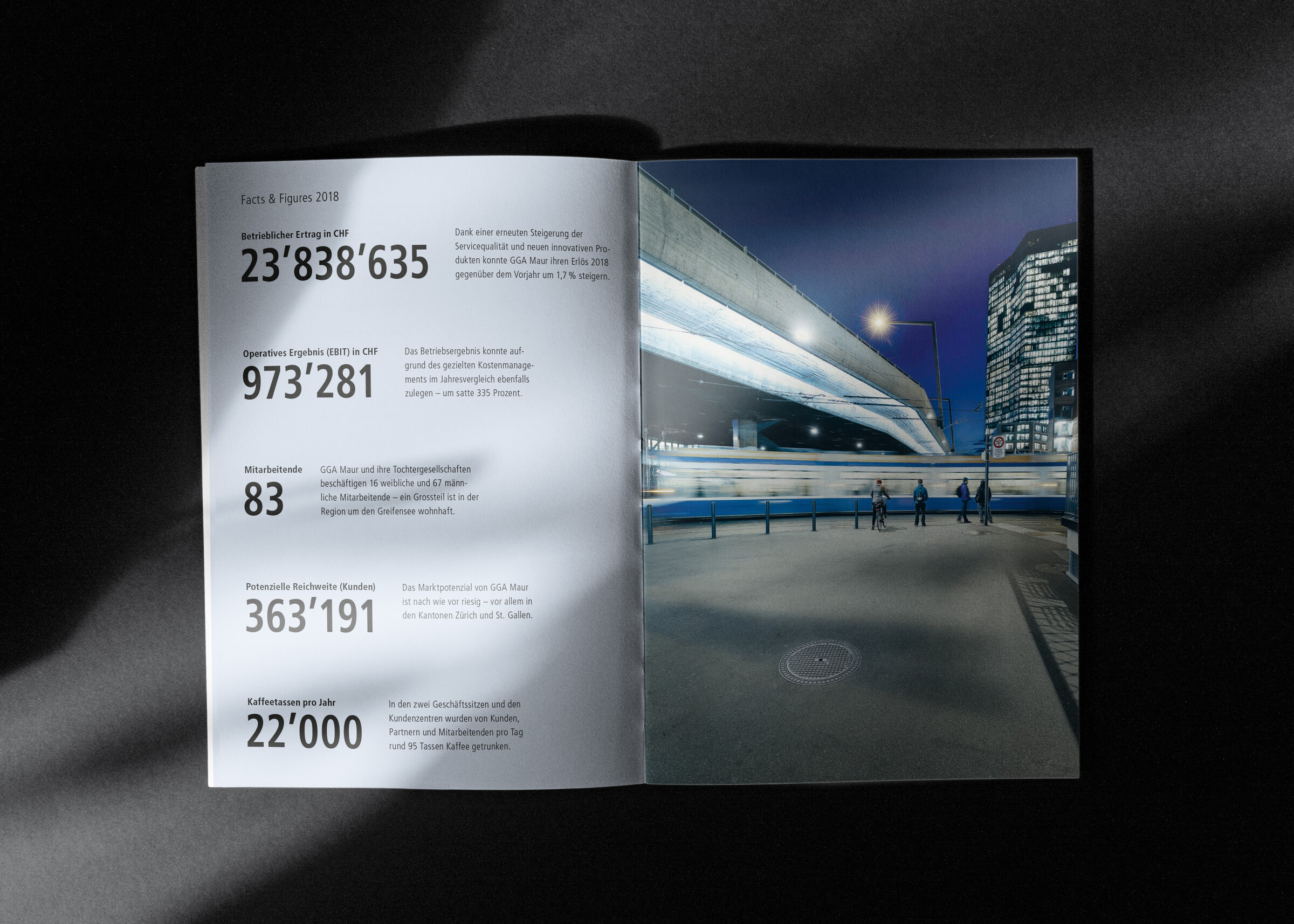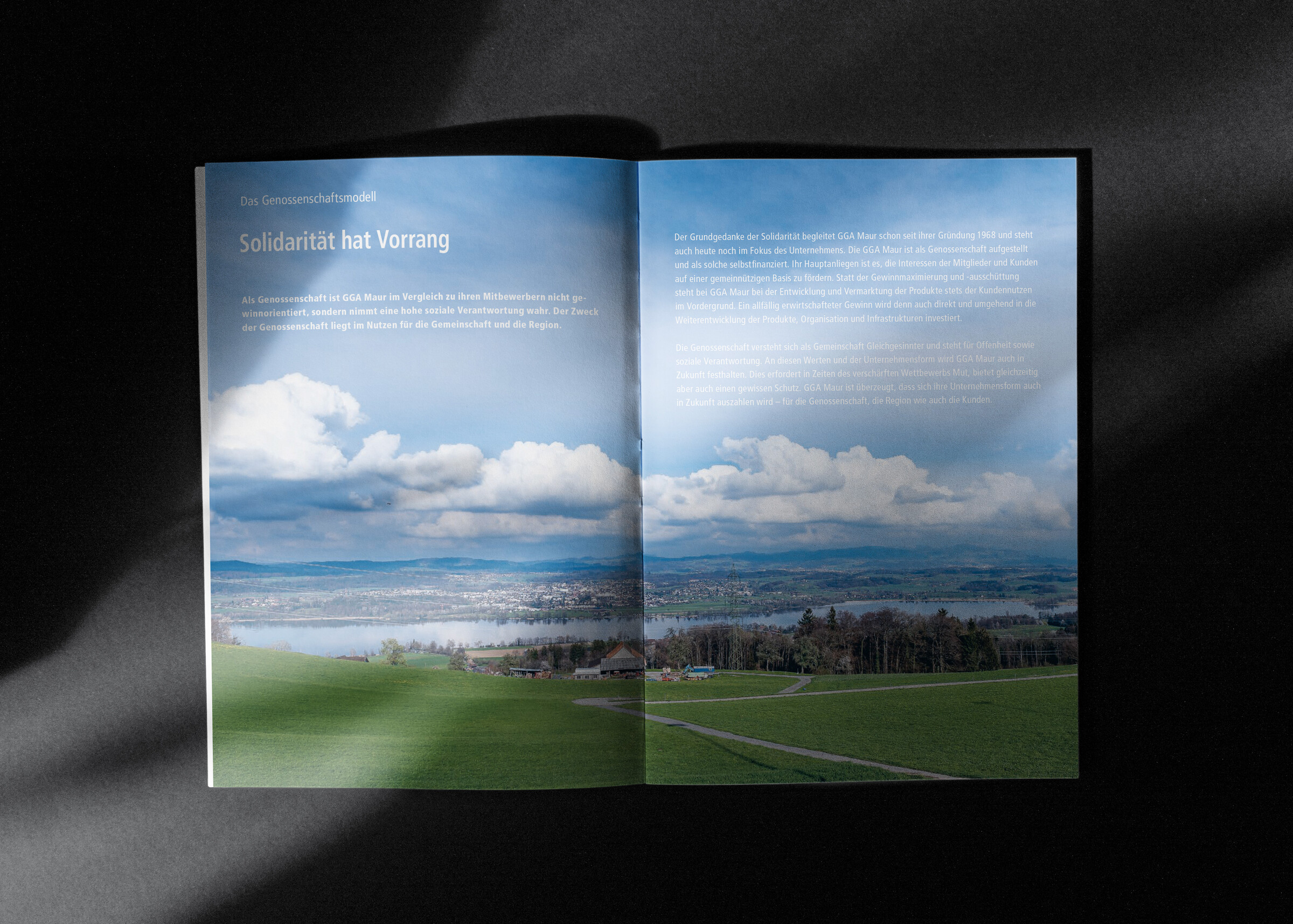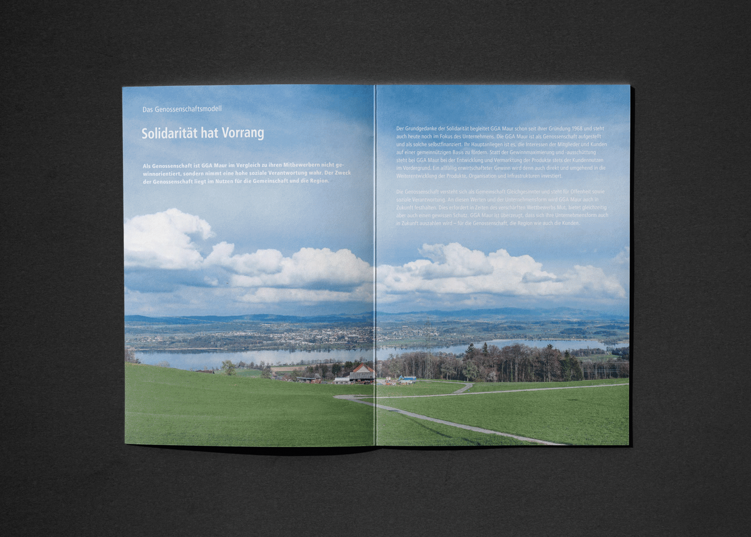 Der Fokus des Jahresberichts von GGA Maur liegt auf Geschichten und Werten. Statt Zahlen stehen reportageartige Artikel, Interviews und Einblicke in die Unternehmenskultur im Mittelpunkt. Gemeinsam mit open up entwickelten wir ein abwechslungsreiches Layout mit Fotos von Geri Krischker. Ein separater Finanzbericht, der auf Anfrage digital zur Verfügung gestellt wird, präsentiert Zahlen und strategische Themen.