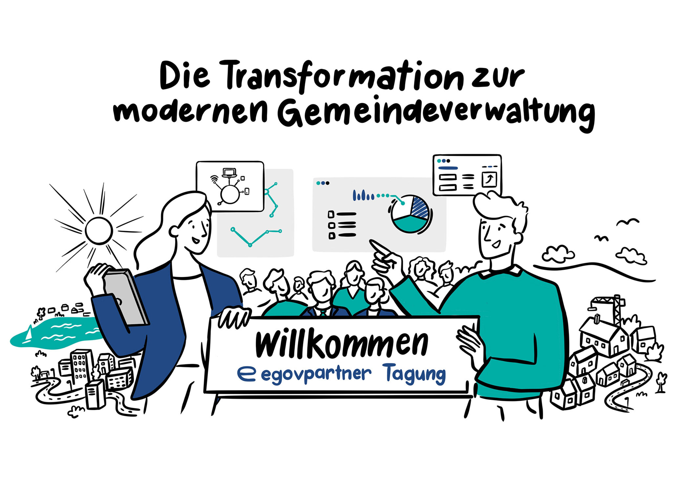 Live gezeichnet und gestalterisch zusammengefasst - ein digitales Graphic Recording unterstützt die eGov Partner Tagung auf dem Weg zur modernen Gemeindeverwaltung.