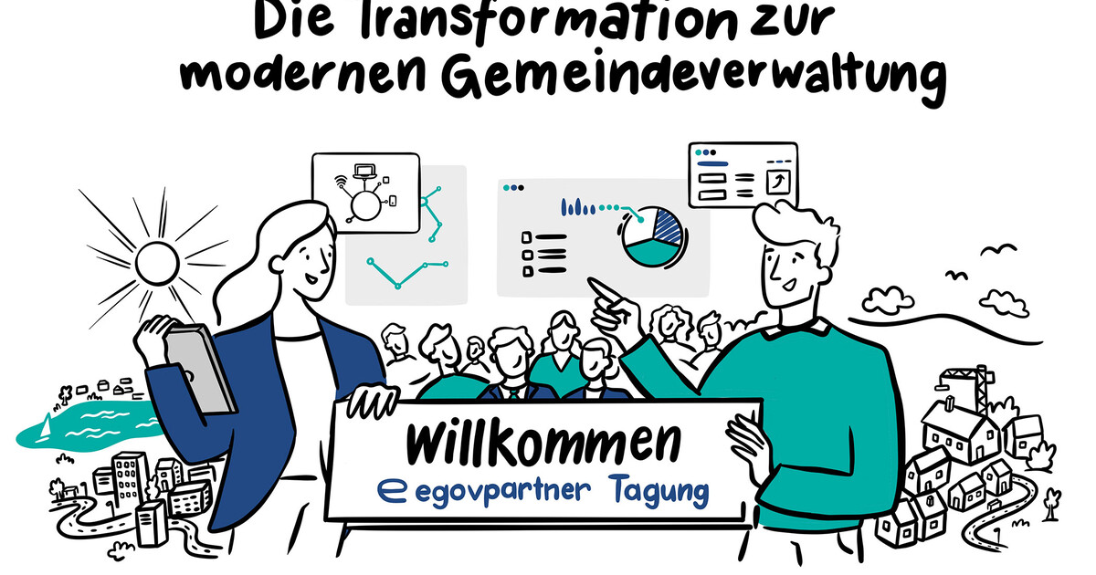 Zum zweiten Jahr in Folge sind wir live dabei an der eGov Partner Tagung. Passend zum Thema der digitalen Transformation für Gemeindeverwaltungen unterstützt ein digitales Graphic Recording die Inputs der Teilnehmenden, sowie die anschliessende Podiumsdiskussion. Ziel der Tagung ist es, diverse Stimmen zu hören und mit neuen Herangehensweisen zur Digitalisierung zu verbinden. Das finale Visual bringt alles auf einer illustrativen Ebene zusammen.