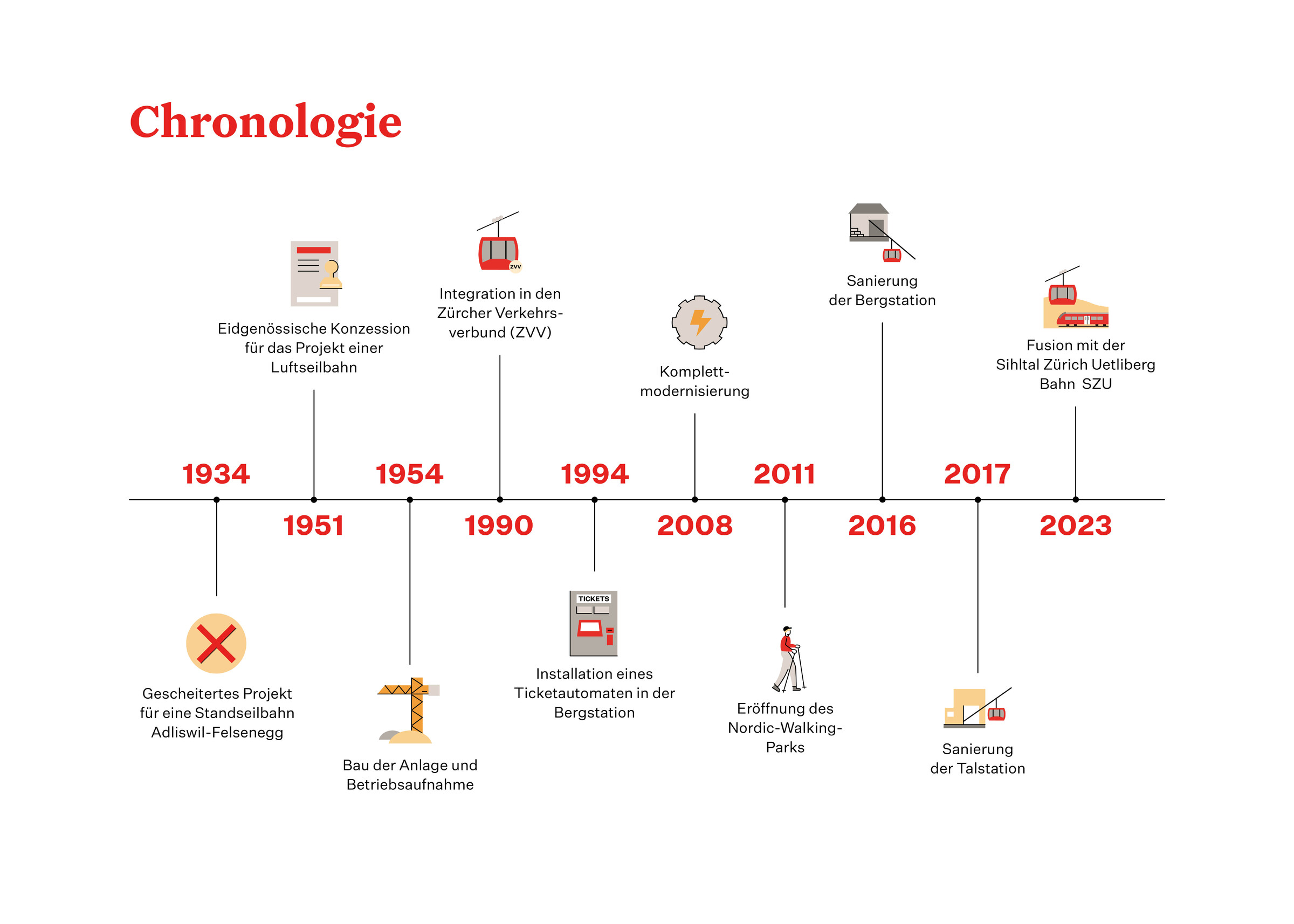 In der Talstation der Felseneggbahn präsentiert sich die Geschichte der Sihltal Zürich Uetliberg Bahn SZU neu nicht mehr als Zeitstrahl sondern auf 21 Tafeln in moderner Petersburger Hängung, die zum Entdecken einladen.