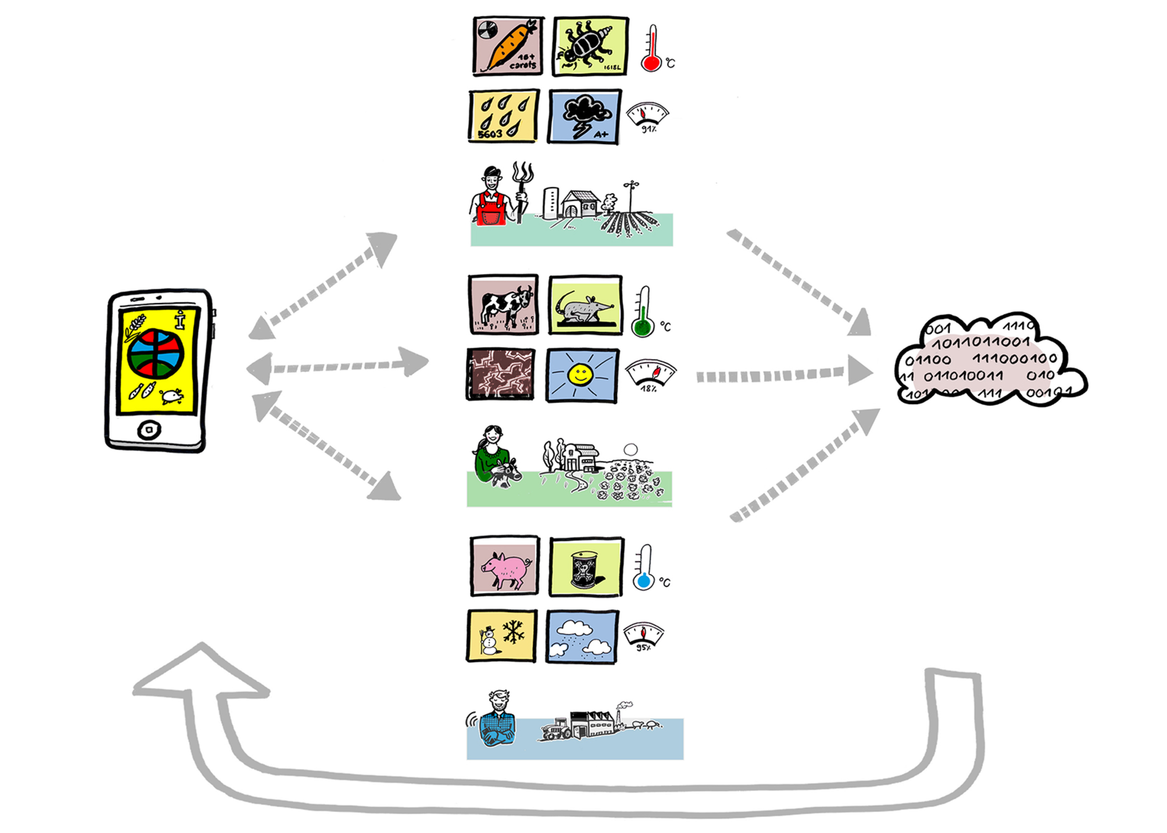Nach diesen Briefings zeichnen wir eine verbesserte, digitale Illustration auf Basis der Flipchart-Skizze. Damit wir schnell vorwärts kommen, arbeiten wir zu zweit.