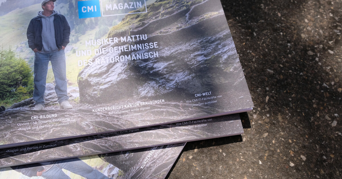 Die Titelstory entführt die Leser:innen dieses Jahr tief in den Kanton Graubünden. Zusammen mit SRF 3 Best Talent Mattiu aus der Surselva lädt CMI zu einer spannenden Entdeckungsreise durch die vierte Landessprache ein. Ergänzt wird die Titelstory durch vielfältige Einblicke, Infos, News und Fallbeispiele rund um die innovativen CMI Lösungsplattform für die öffentliche Verwaltung und den Bildungsbereich.