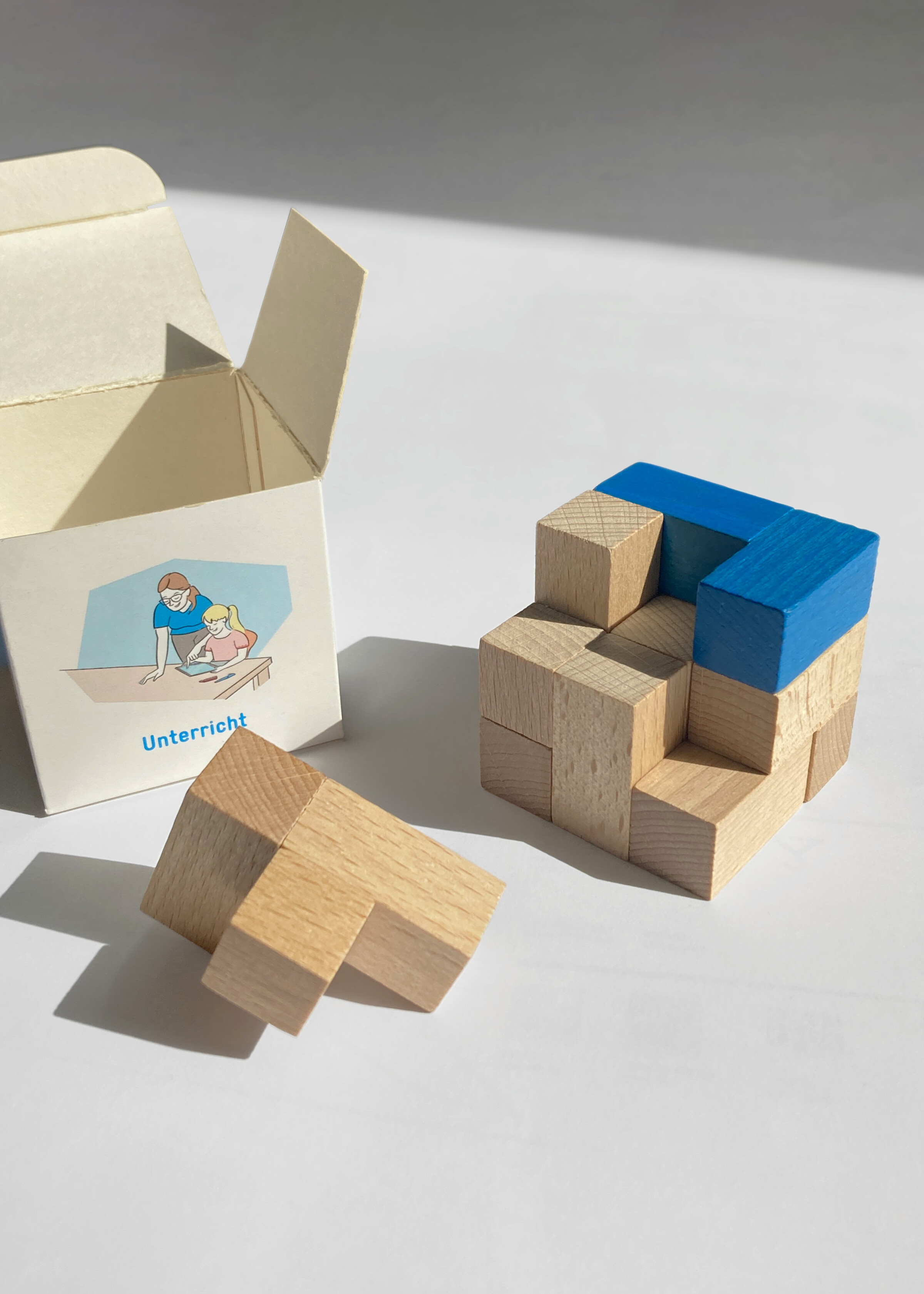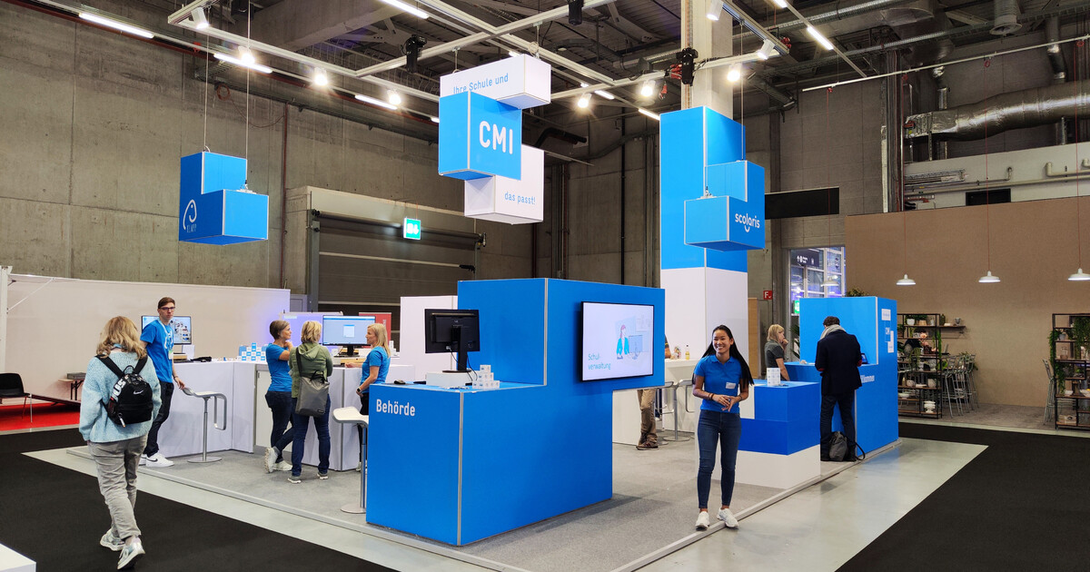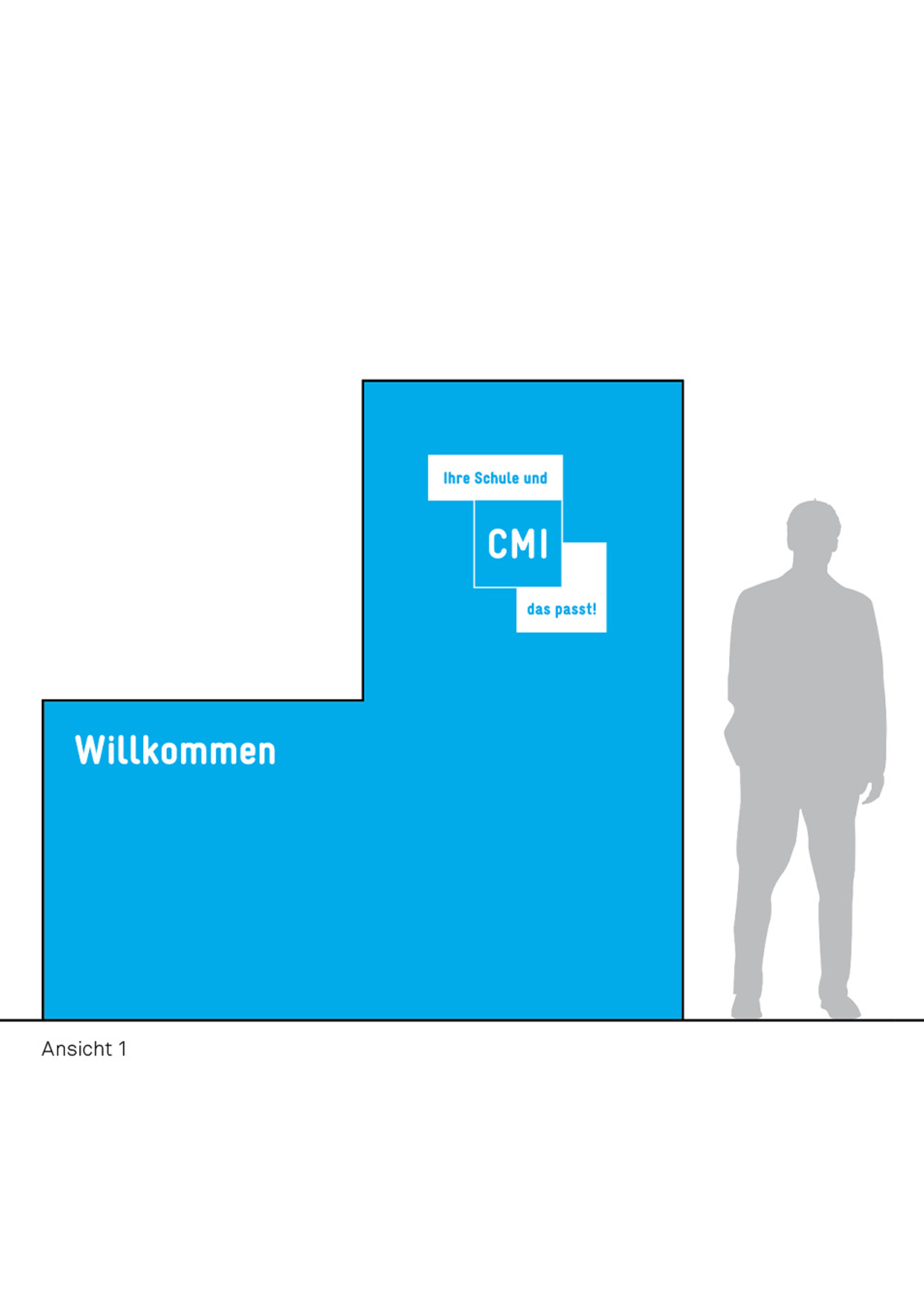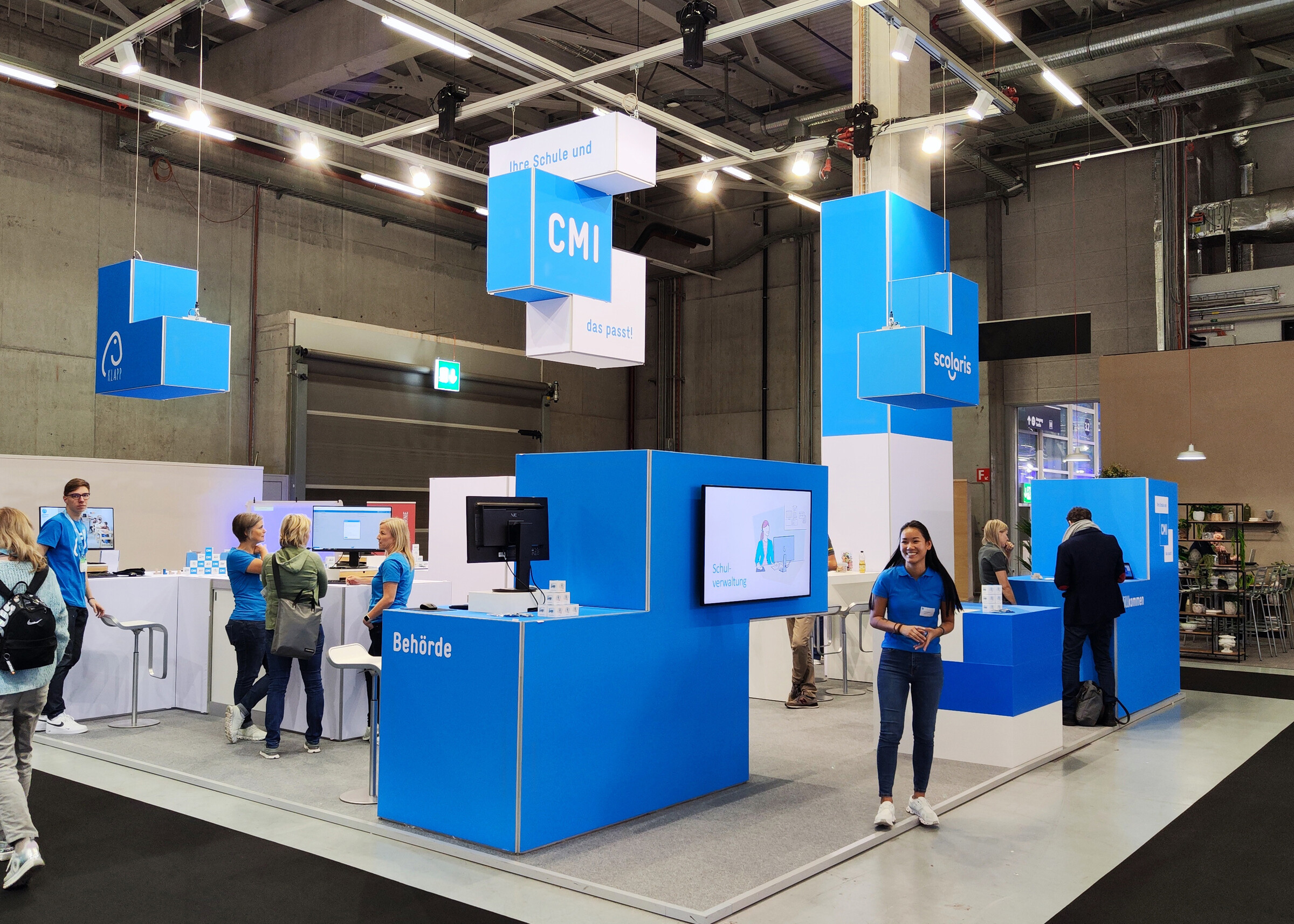 Inspiriert vom Retro-Videospielklassiker Tetris passen die Blöcke wie Puzzleteile ineinander. Der Blickfang im oberen Bereich des Messestandes, die Möblierung am Stand selbst und ein XXL-Puzzle, das vor Ort gespielt werden konnte, sind von dieser Idee abgeleitet. So setzten wir den Claim «Ihre Schule und CMI: das passt!» überzeugend bildlich um.