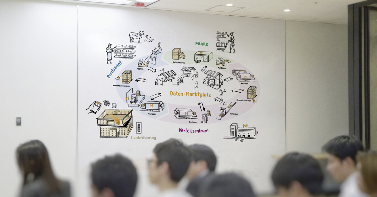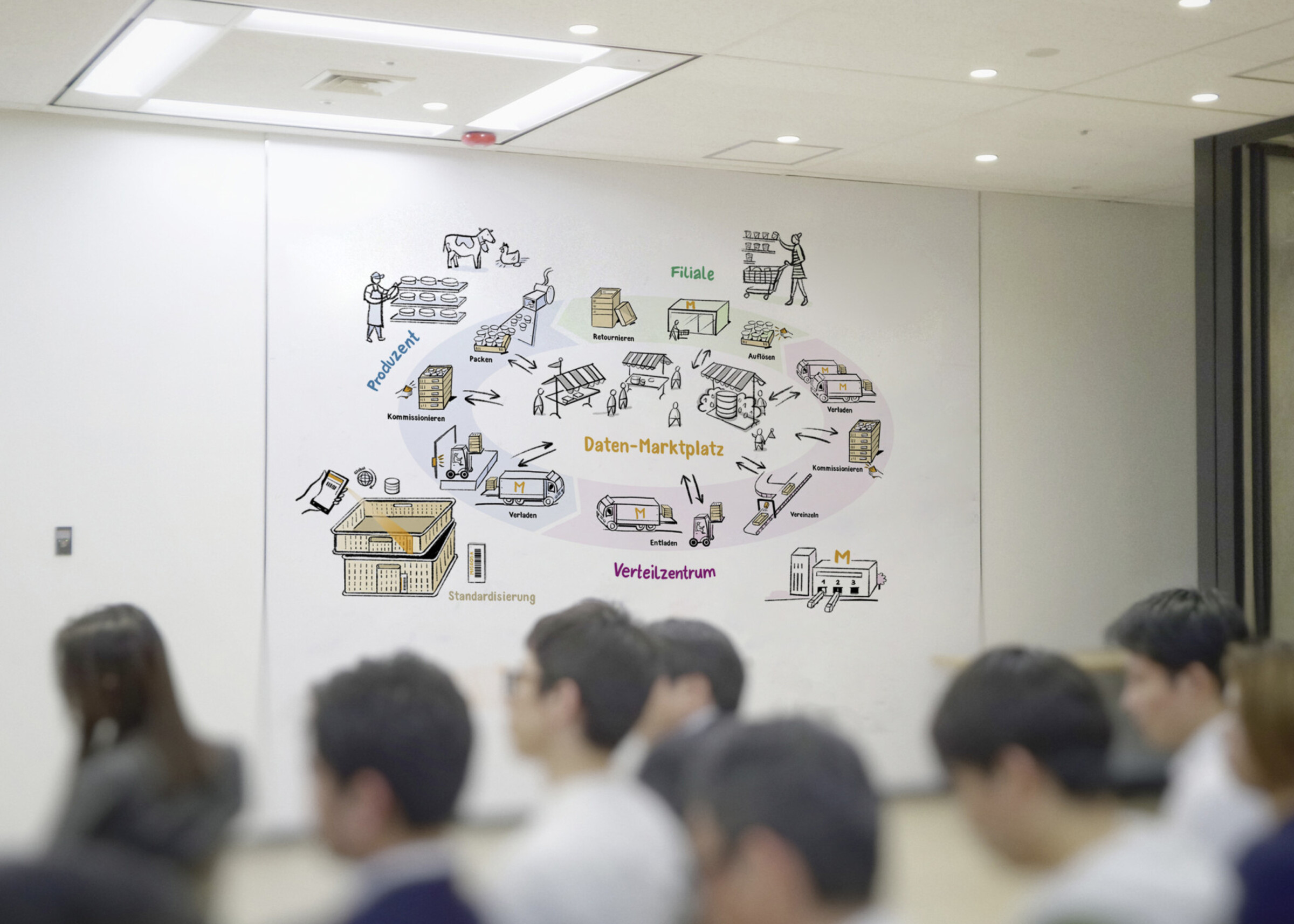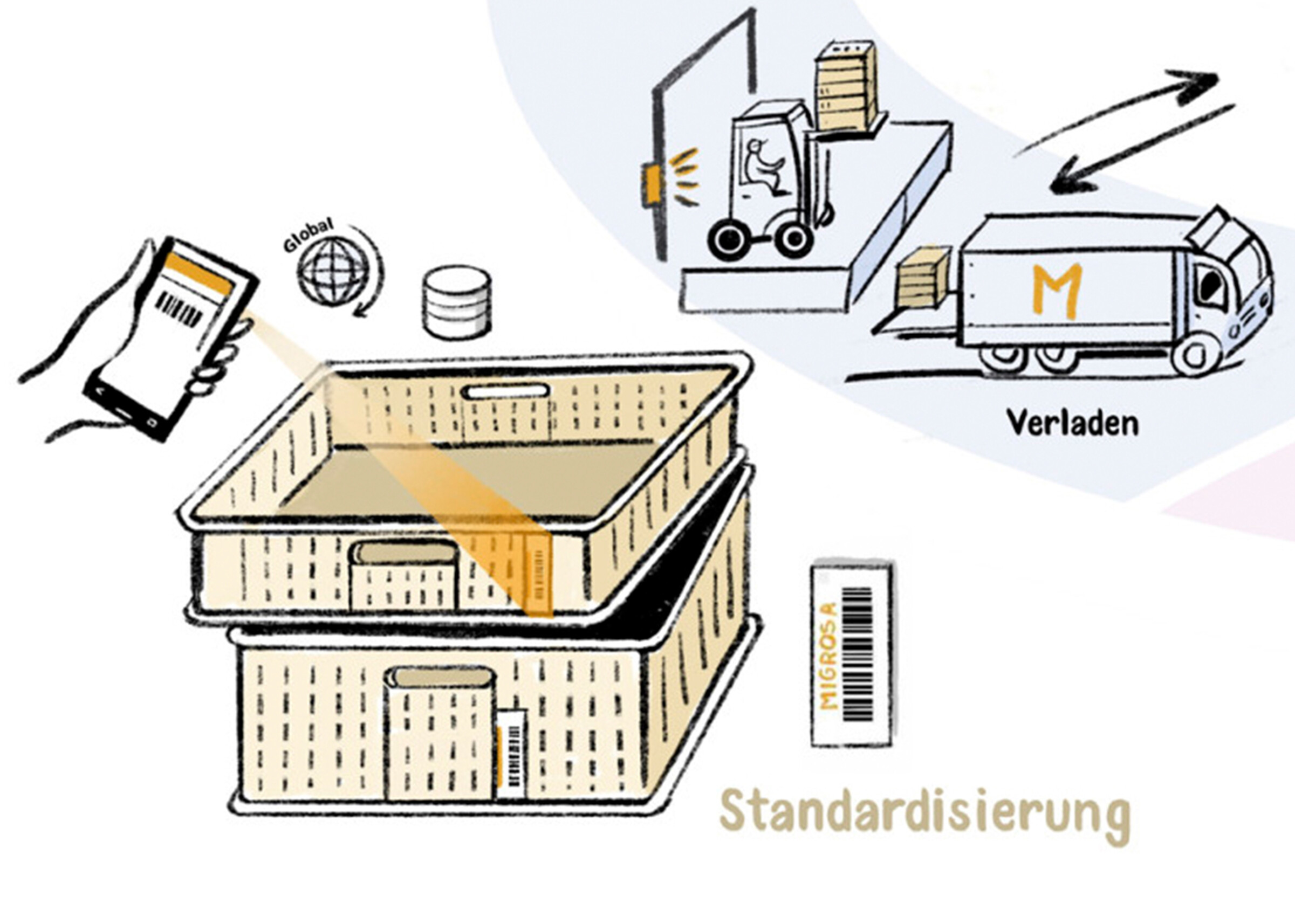 Vom Produzenten bis auf den Teller der Konsument:innen: Unsere Illustrationen zeigen die zirkulären Prozesse und die Digitalisierung im Bereich der Logistik bei der Migros. Die Bilder entstanden in enger Zusammenarbeit mit dem Kunden und vereinfachen die Darstellung interner Abläufe.