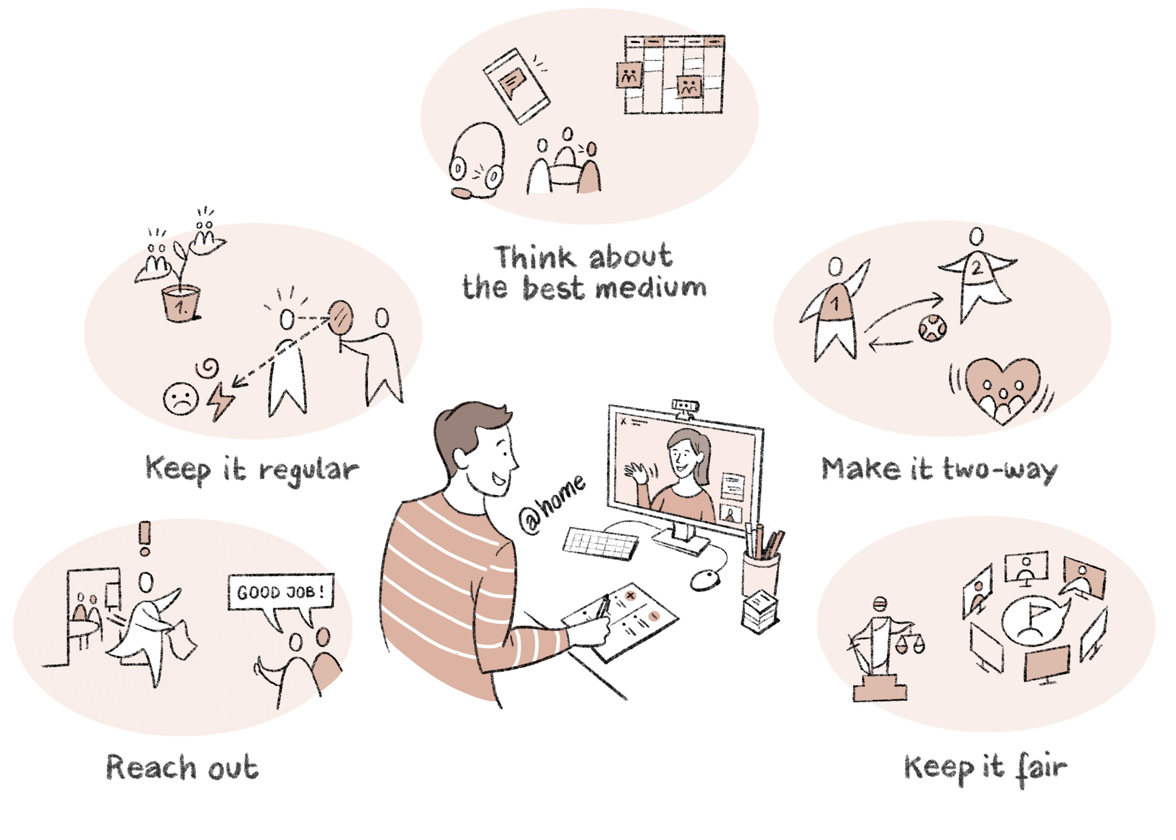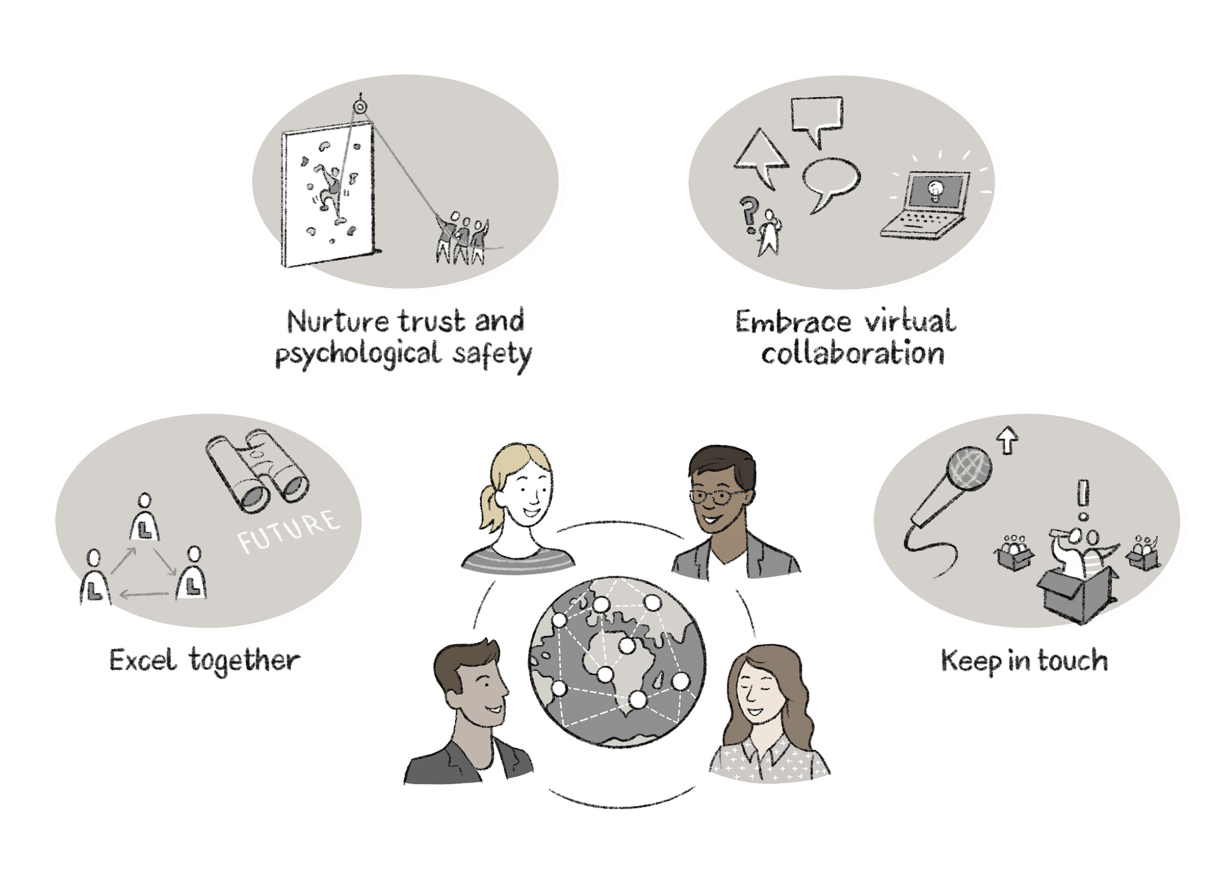 Während der Covid-Pandemie war es für Unternehmen eine Herausforderung, ihre Mitarbeitenden auch über Distanz mit Artikeln zu arbeitskulturellen Themen zu erreichen. Unsere Bilder leisteten dabei einen wertvollen Beitrag, indem sie den Mitarbeitenden als Einstiegshilfe in den Text das Wichtigste der Artikel ansprechend und sympathisch zusammenfassten.