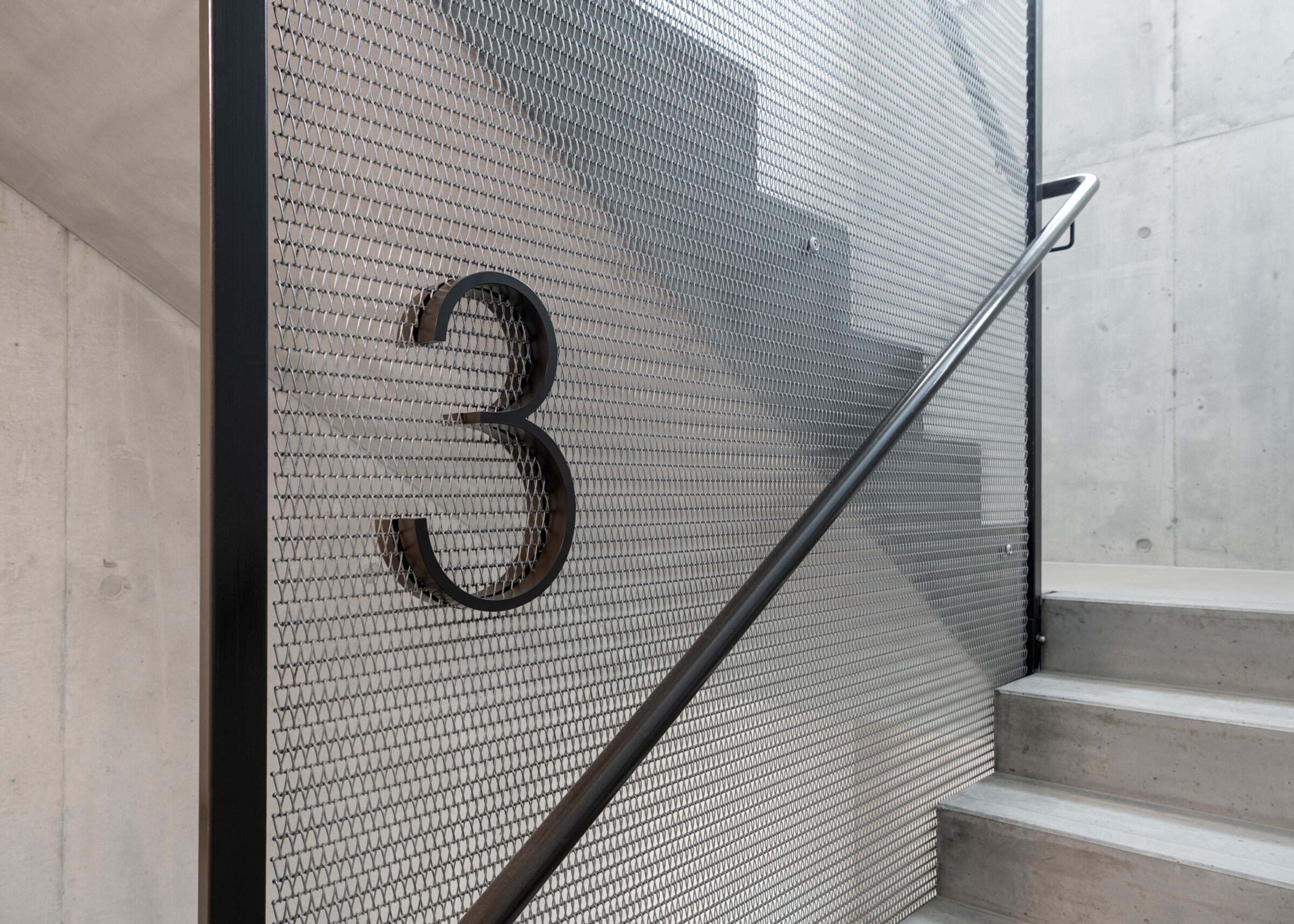 Die zielgruppengerechte Signaletik geht auf die Materialisierung und Farbgebung der Architektur ein.
