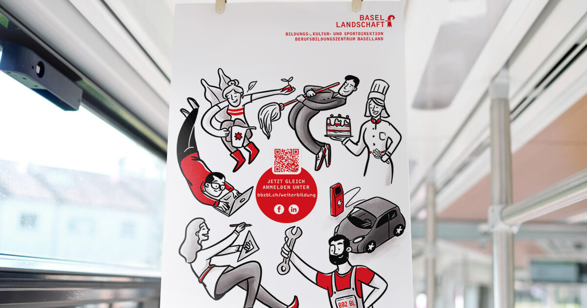 Der Tramhänger bewirbt das Weiterbildungsangebot am BBZ BL mit einem modernen Layout und einem aufmerksamkeitsstarken Keyvisual.