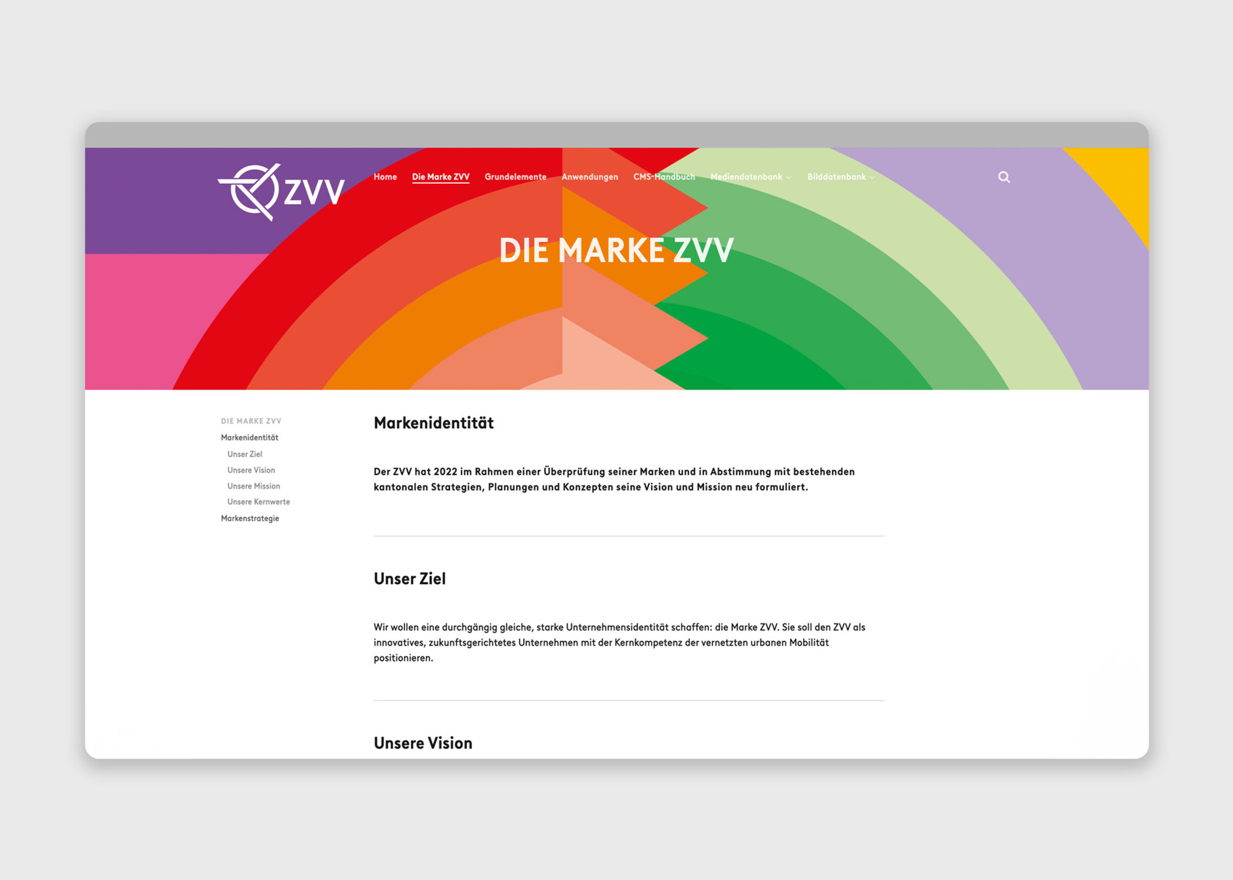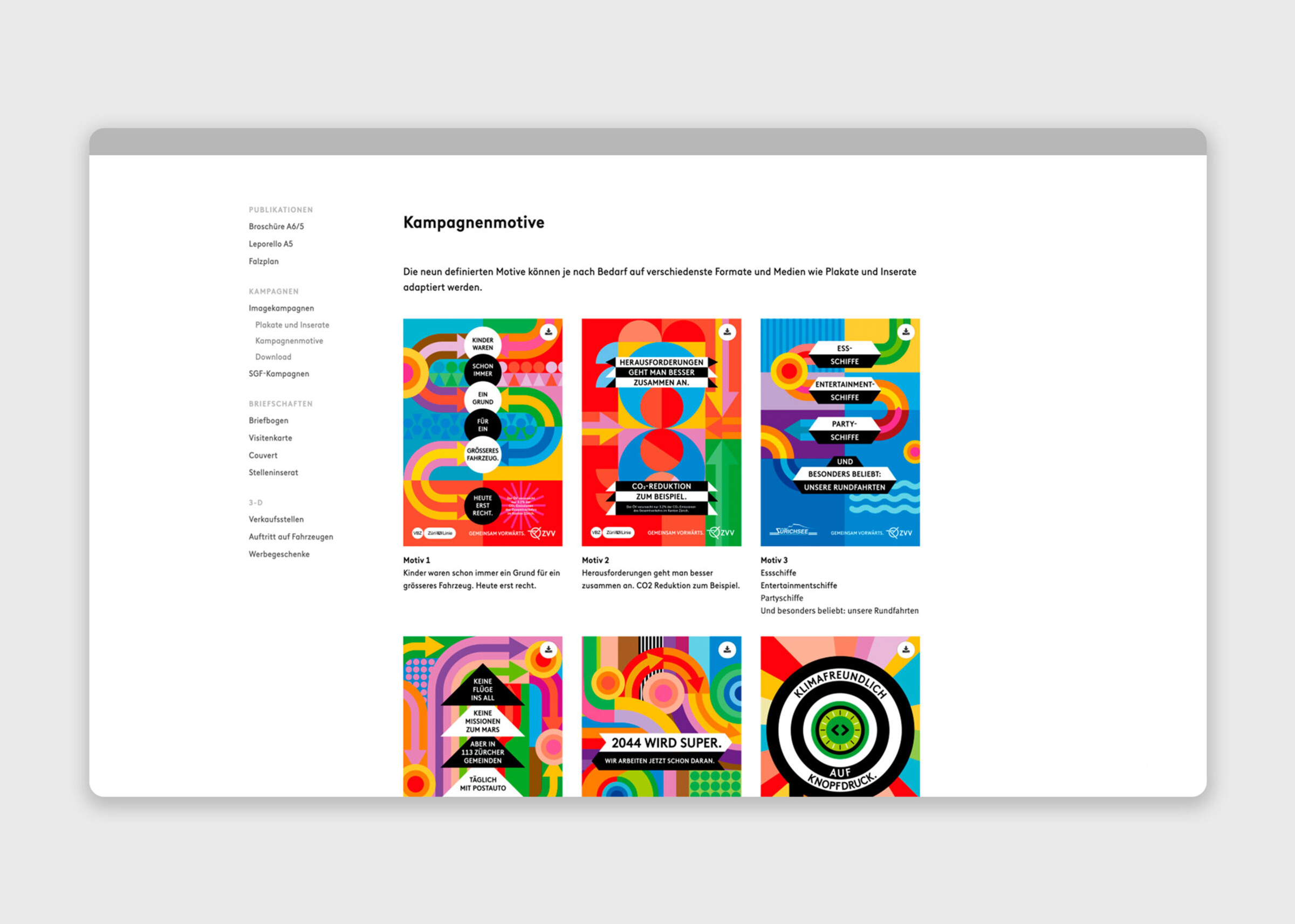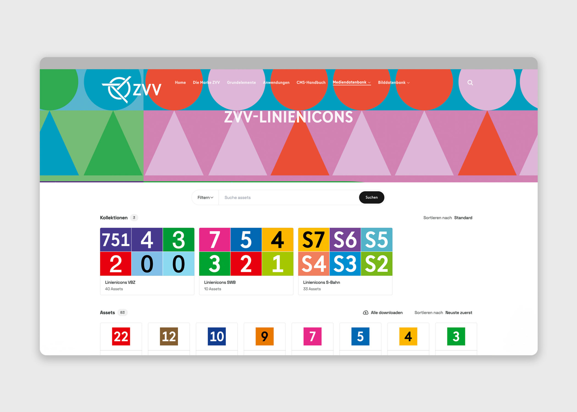 Um den Markenauftritt der ZVV für verschiedene Personengruppen sichtbar und nutzbar zu machen, erstellten wir eine benutzerfreundliche Brand-Management-Plattform für den Zürcher Verkehrsverbund. Auf der Plattform ist das Corporate Design des ZVV strukturiert, spezifiziert sowie visuell und didaktisch klar aufbereitet. Spezifische Markenelemente wie Logos, Stempel und Icons der Stadtzürcher Verkehrslinien sind homogenisiert und übersichtlich für den Download dargestellt.