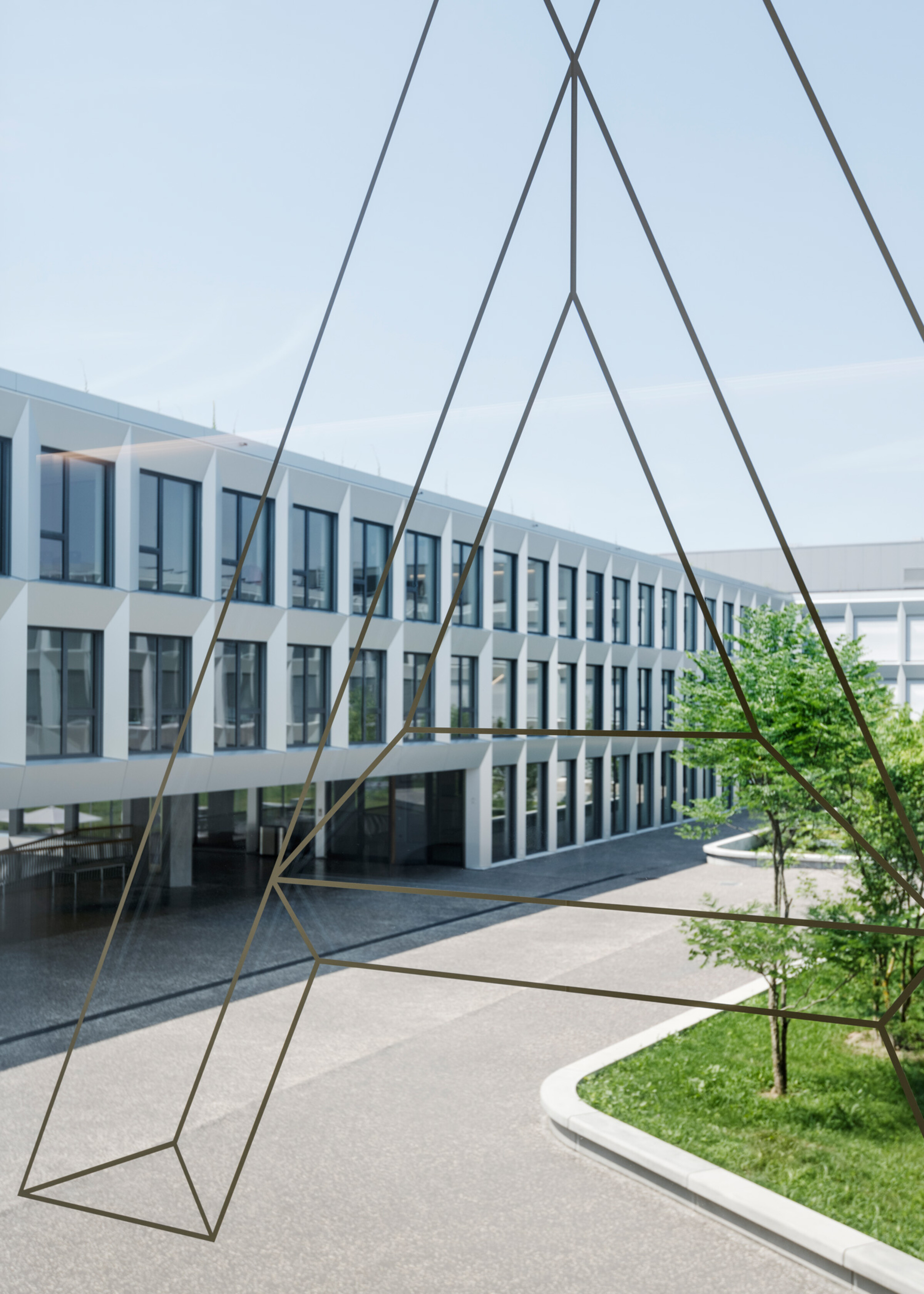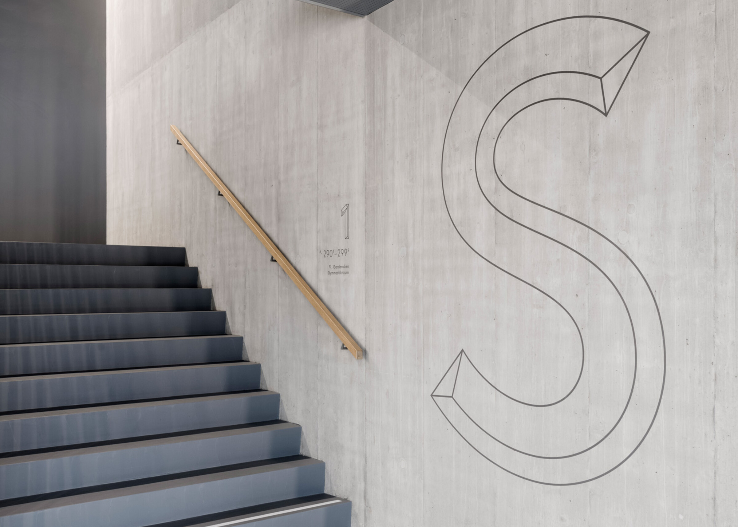 In enger Absprache mit den verantwortlichen Architekten und weiteren Fachplanern planten wir die Aussenkennzeichnung, die Wegleitung und die Raumkennzeichnung – gesamthaft und sauber aufeinander abgestimmt. Die Signaletik ist dabei eng an das architektonische Konzept angelehnt. Die unterschiedlich abgewinkelten Flächen der Fassadenelemente inspirierten uns, eine eigene Schrift zu entwickeln, die diesen Charakter sogar räumlich aufnimmt. Auch die Farben der Fenster und Böden sind in den Schriftelementen reflektiert.