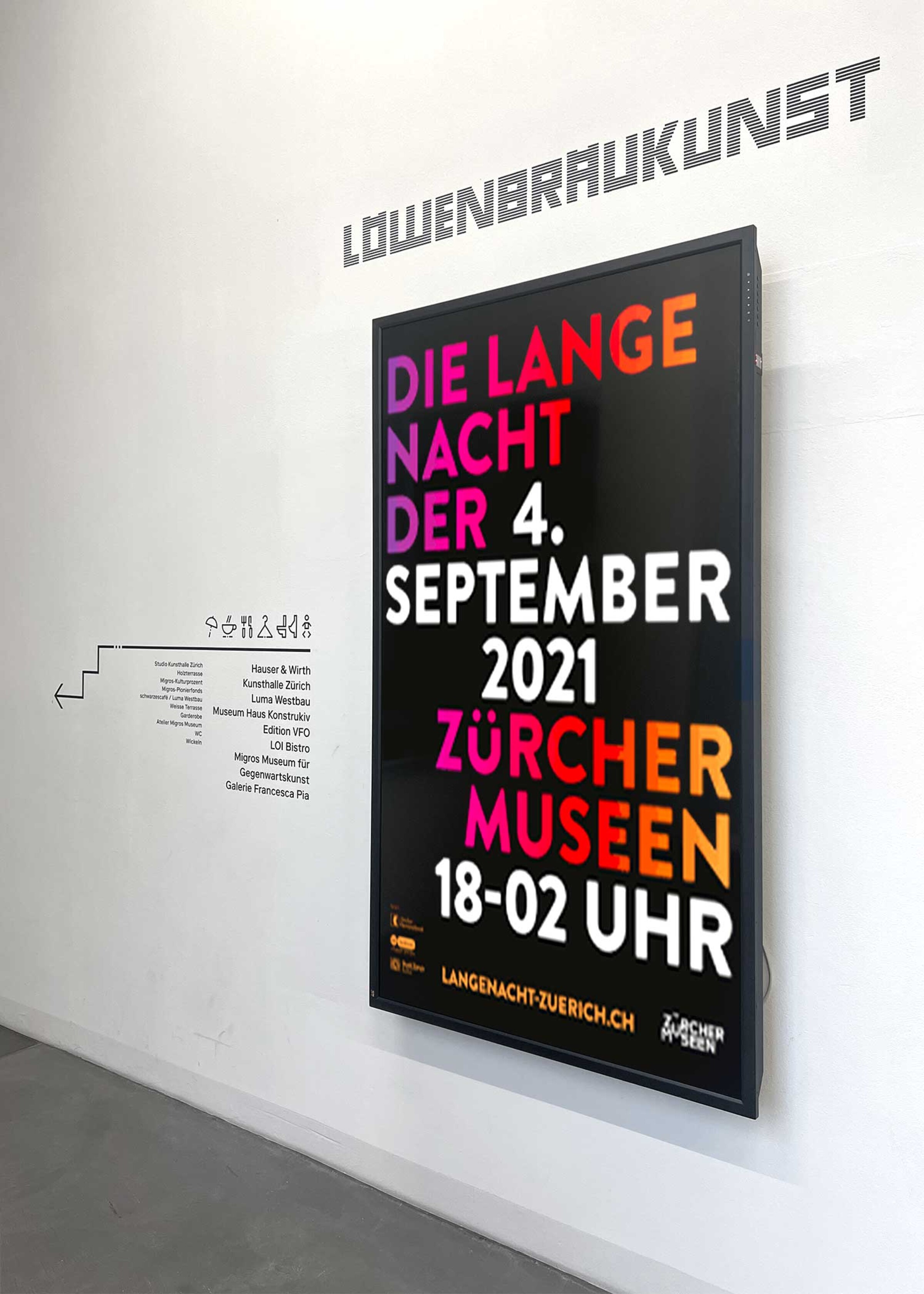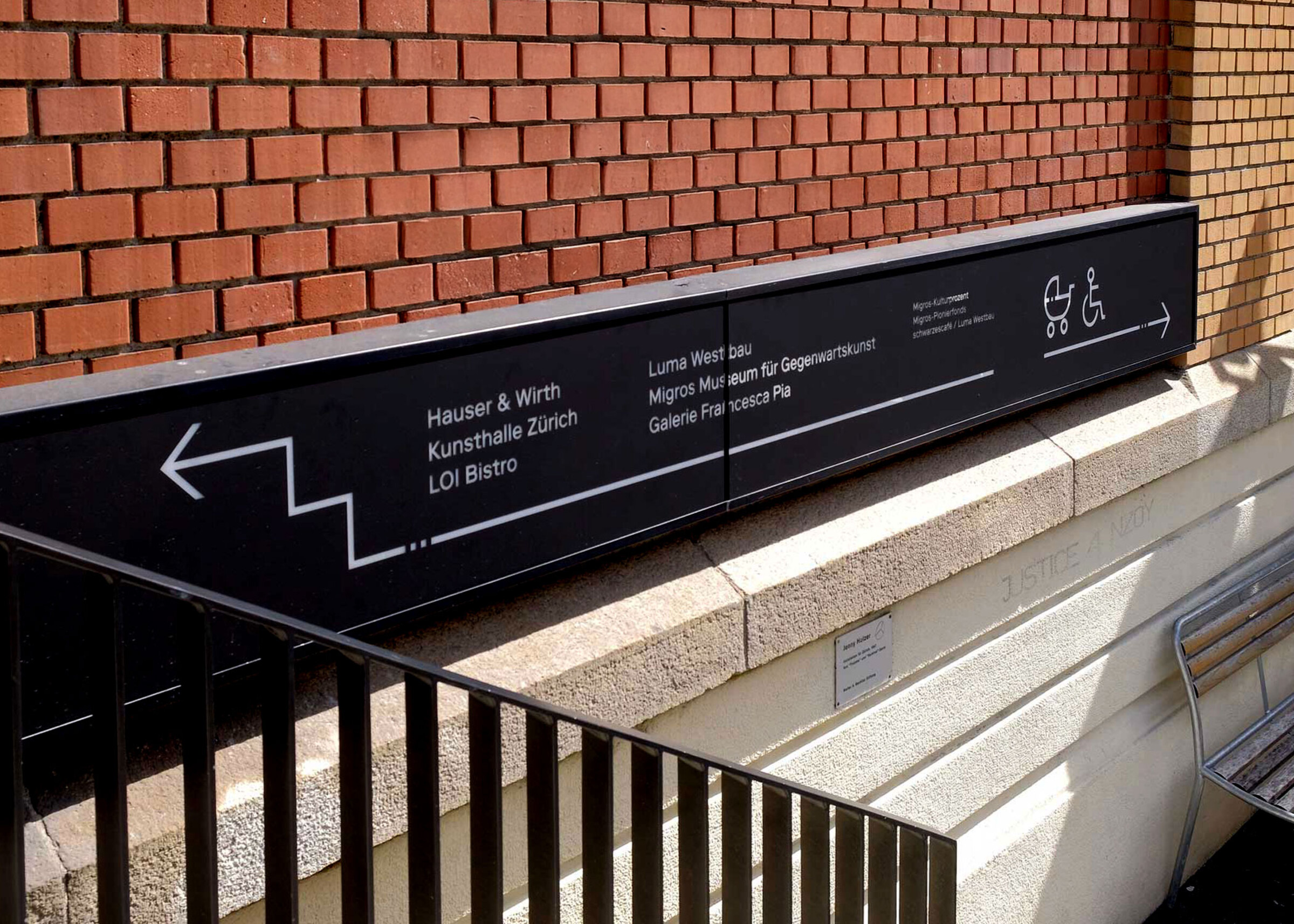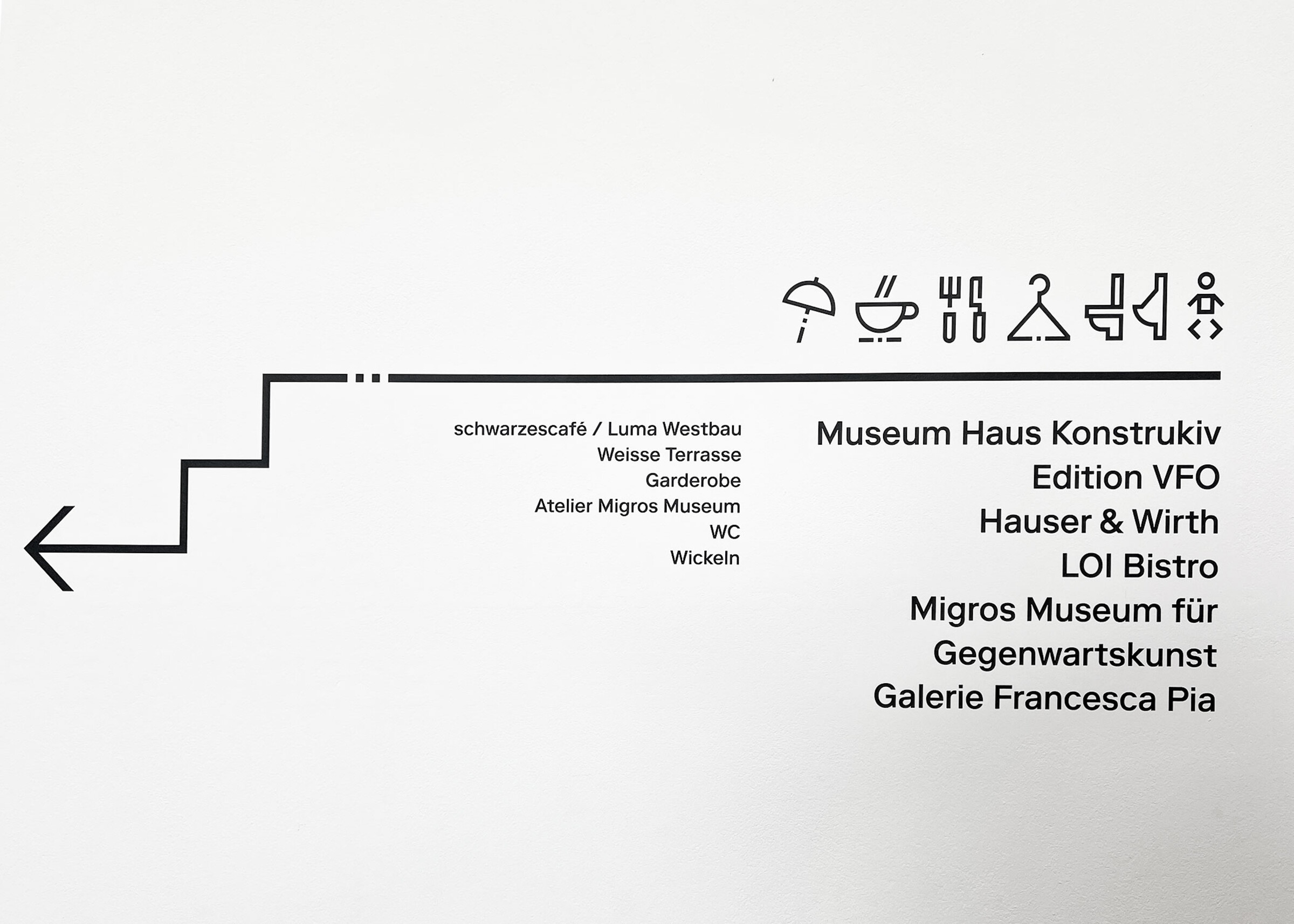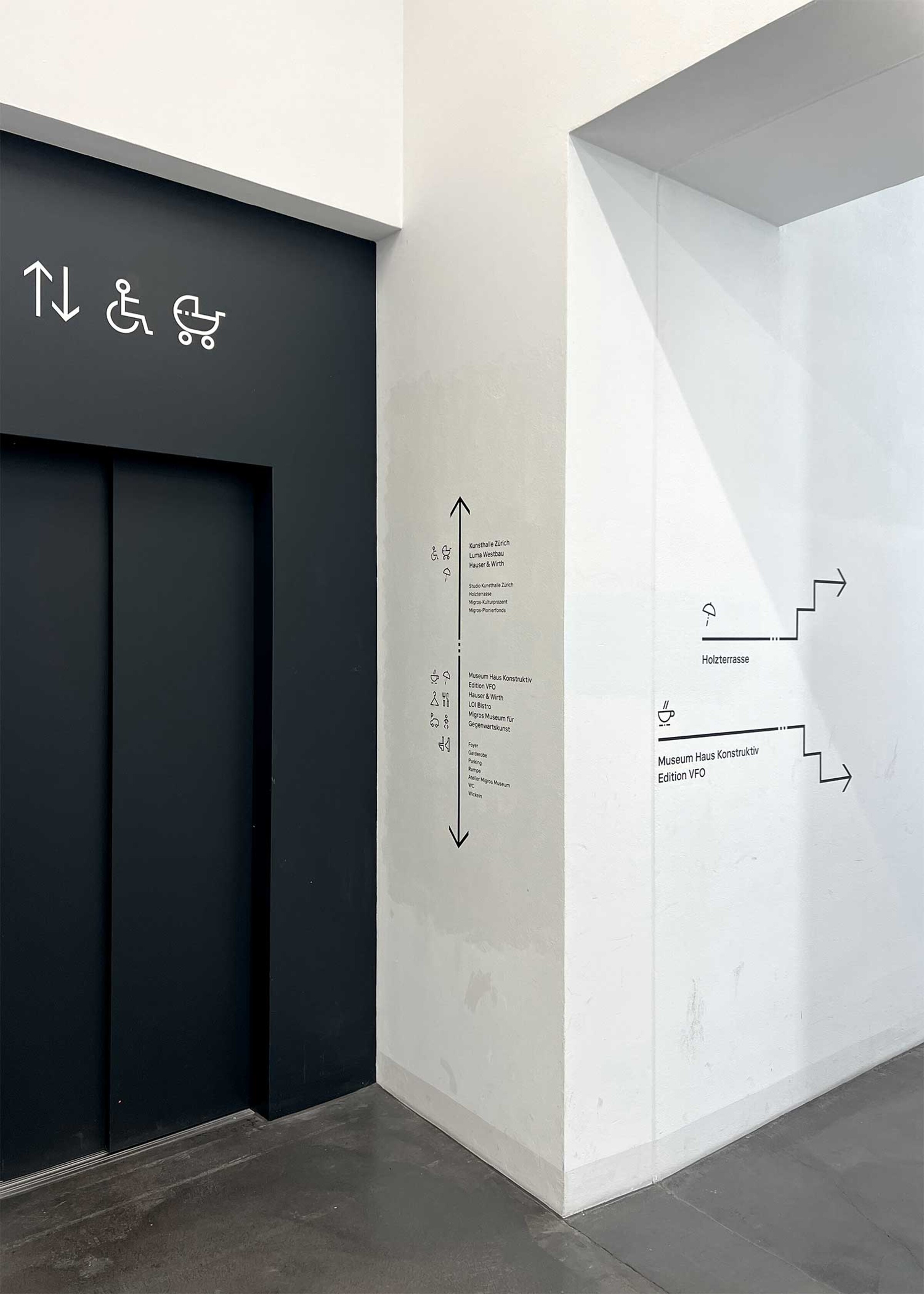 Ein klares Wegleitungssystem lotst Besucher:innen und Gäste sicher durch das Zürcher Kunstzentrum, wo Museen, Galerien und Kulturinstitutionen unter einem Dach vereint sind.
