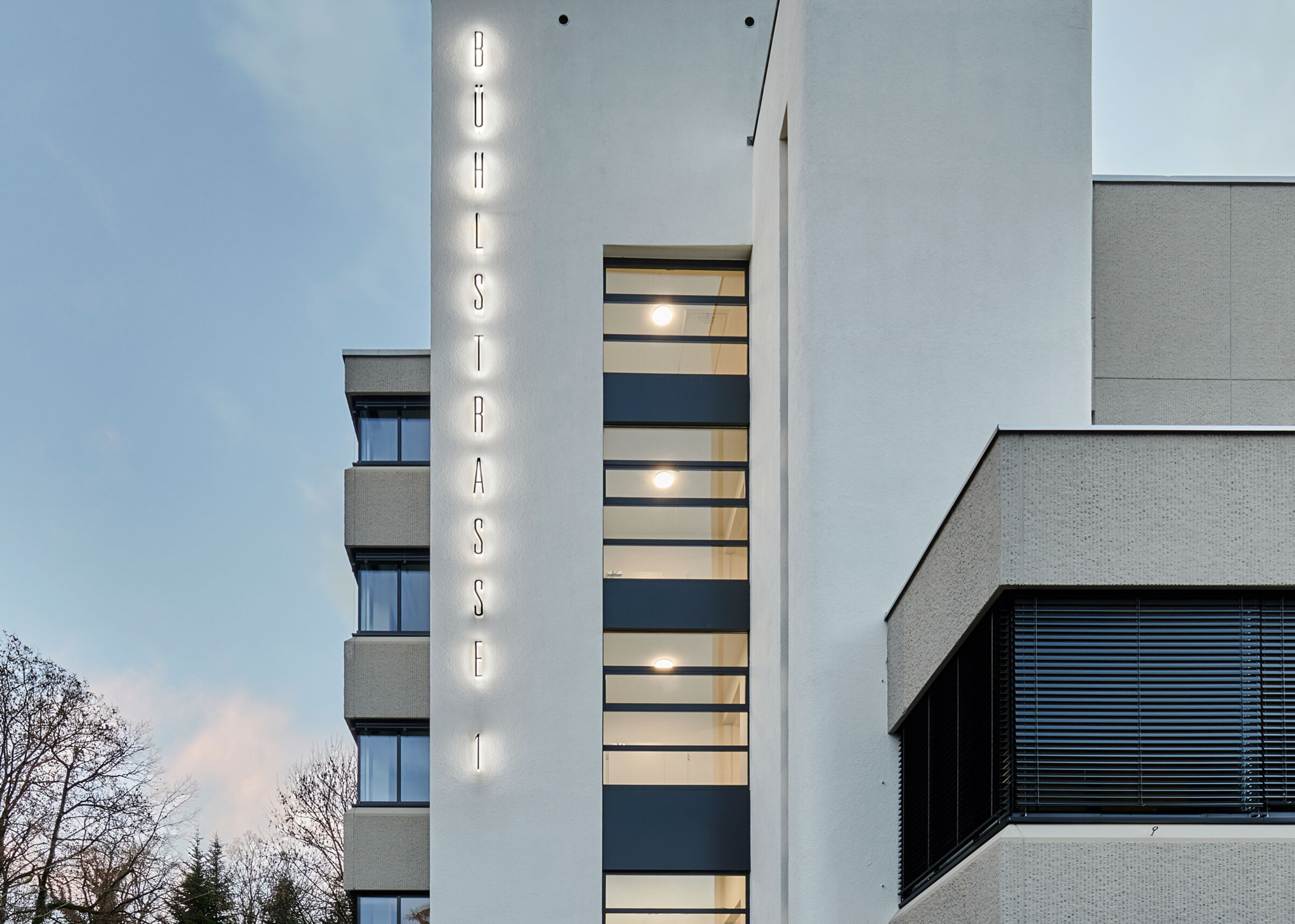 Unsere Signaletik fügt sich nahtlos in die bestehende Architektur ein und verstärkt deren Wirkung – eine klare Orientierung mit ästhetischem Mehrwert, sichtbar bei Tag und Nacht.