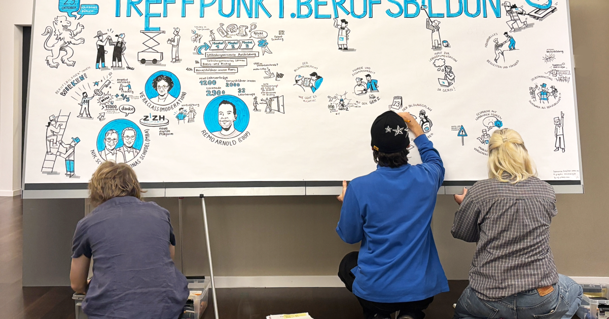 Den Event des Mittelschulamtes zum Thema Berufsbildung begleiteten wir zeichnerisch mit Hilfe von drei unserer Lernenden.