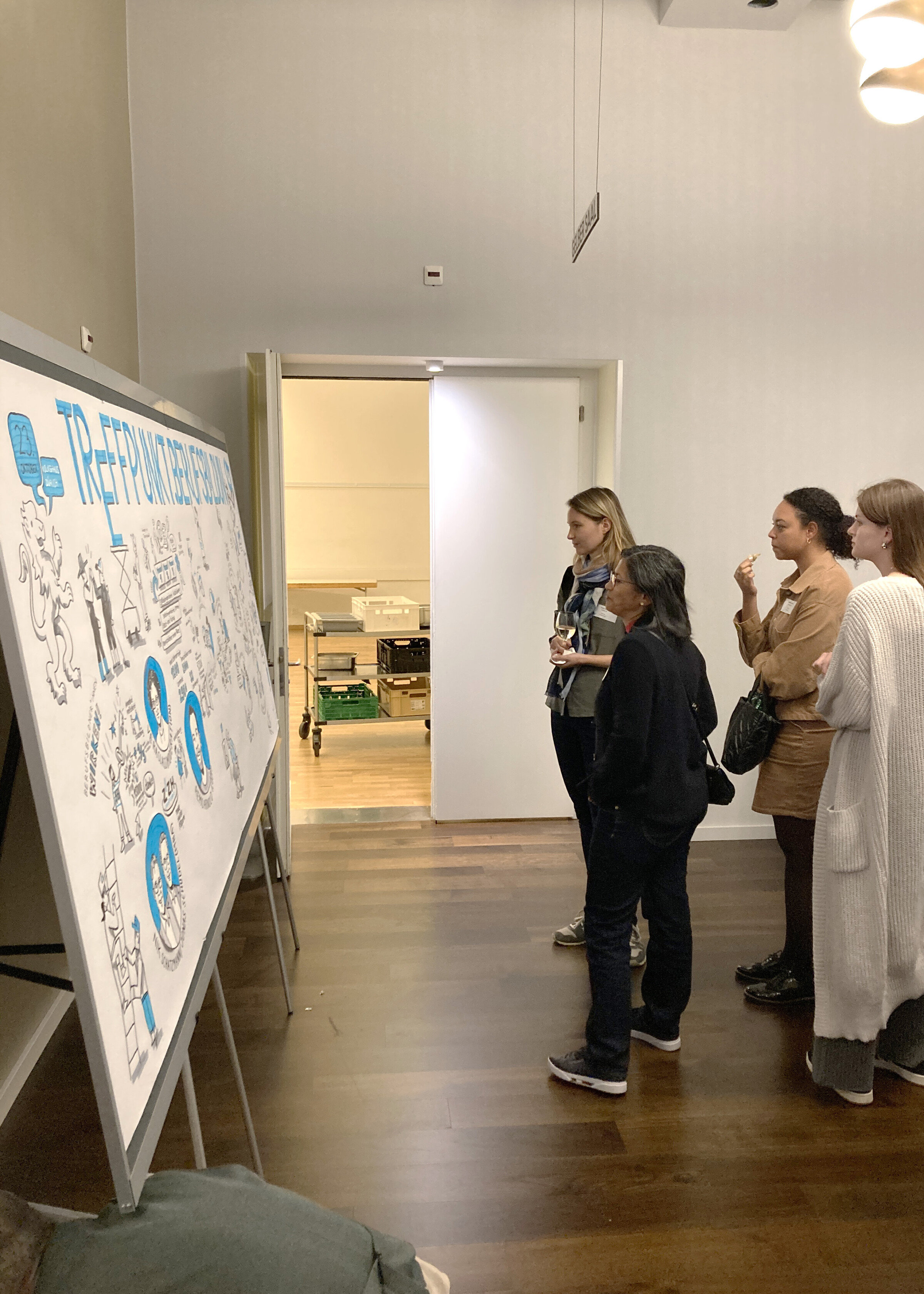 Das MBA organisiert jährlich einen kostenlosen Anlass, an dem sich Berufsbildner:innen austauschen und weiterbilden können. Passend zum Thema gestalteten unsere drei Lernenden das Graphic Recording unter Anleitung von Berufsbildner André Sandmann. So zeigten sie vor Ort ihr Können und viele Besuchende waren beeindruckt von den zeichnerischen Fähigkeiten.