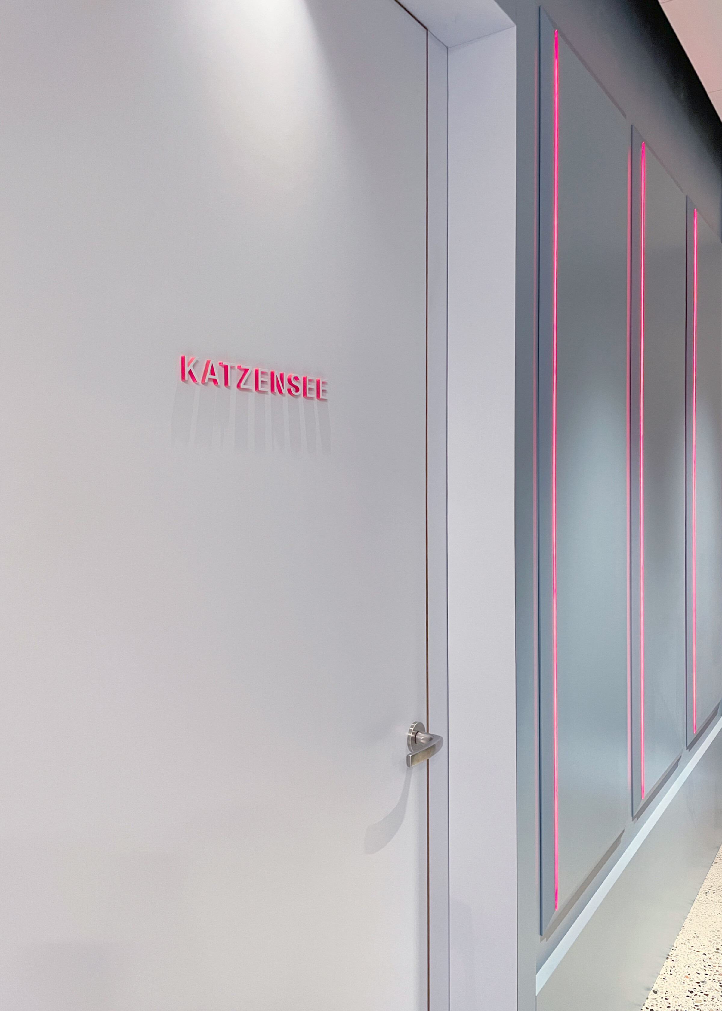 Ein zentrales Element unseres Konzepts sind fünf handillustrierte heimische Wasservögel, die den Beratungszimmer zugeordnet sind. Jedes Zimmer trägt den Namen eines Zürcher Sees, und die da heimischen Vögel – sorgfältig gestaltet in einer reduzierten, eleganten Formensprache – schaffen eine visuelle Verbindung zur regionalen Identität.