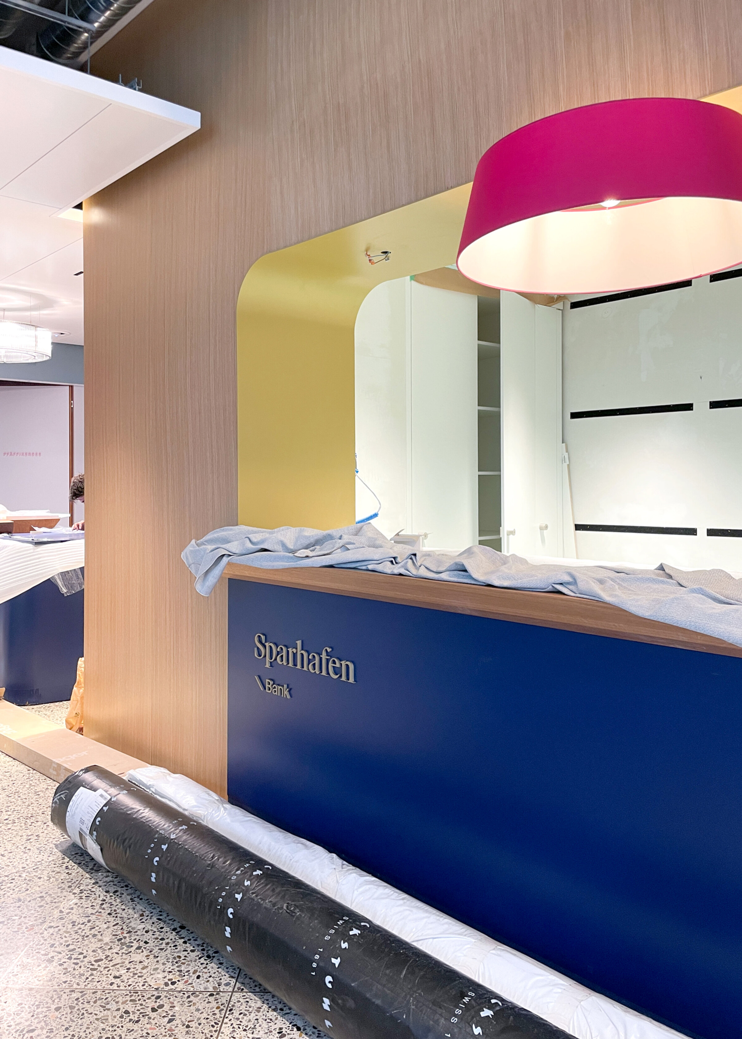 Beim Umbau der Sparhafen Bank AG zum 175-Jahre-Jubiläum galt es, Historie und Moderne in Einklang zu bringen. Die Signaletik für die neu gestalteten Geschäftsräume fügt sich harmonisch in das neue Innenarchitekturkonzept von Bureau Hindermann ein, setzt die ehrwürdige Marke in Szene und unterstützt die Orientierung intuitiv.