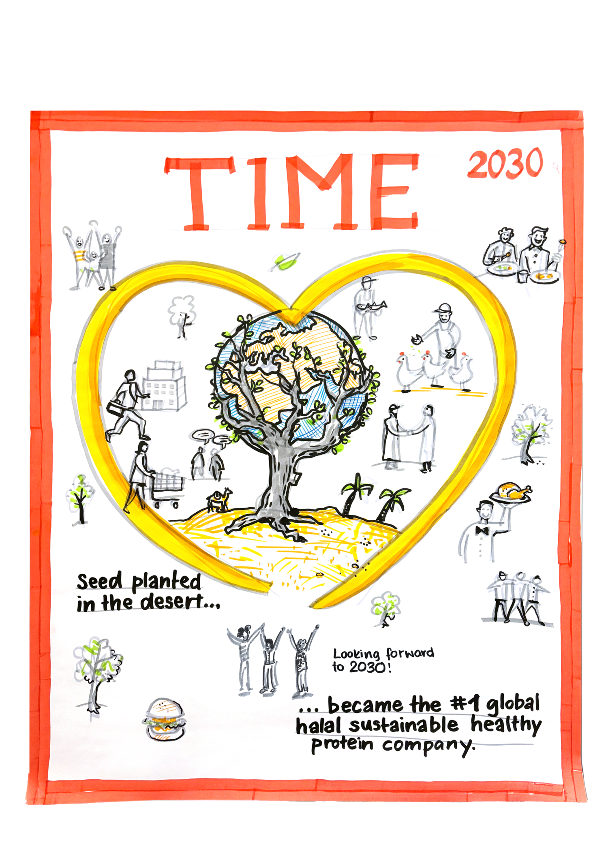 The company vision beautifully framed as a picture of a time magazine cover. As a symbol for storytelling, cascading the essence of the strategy throughout the divisions of the company.
