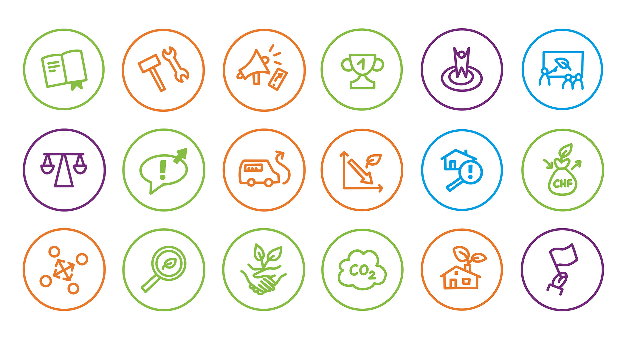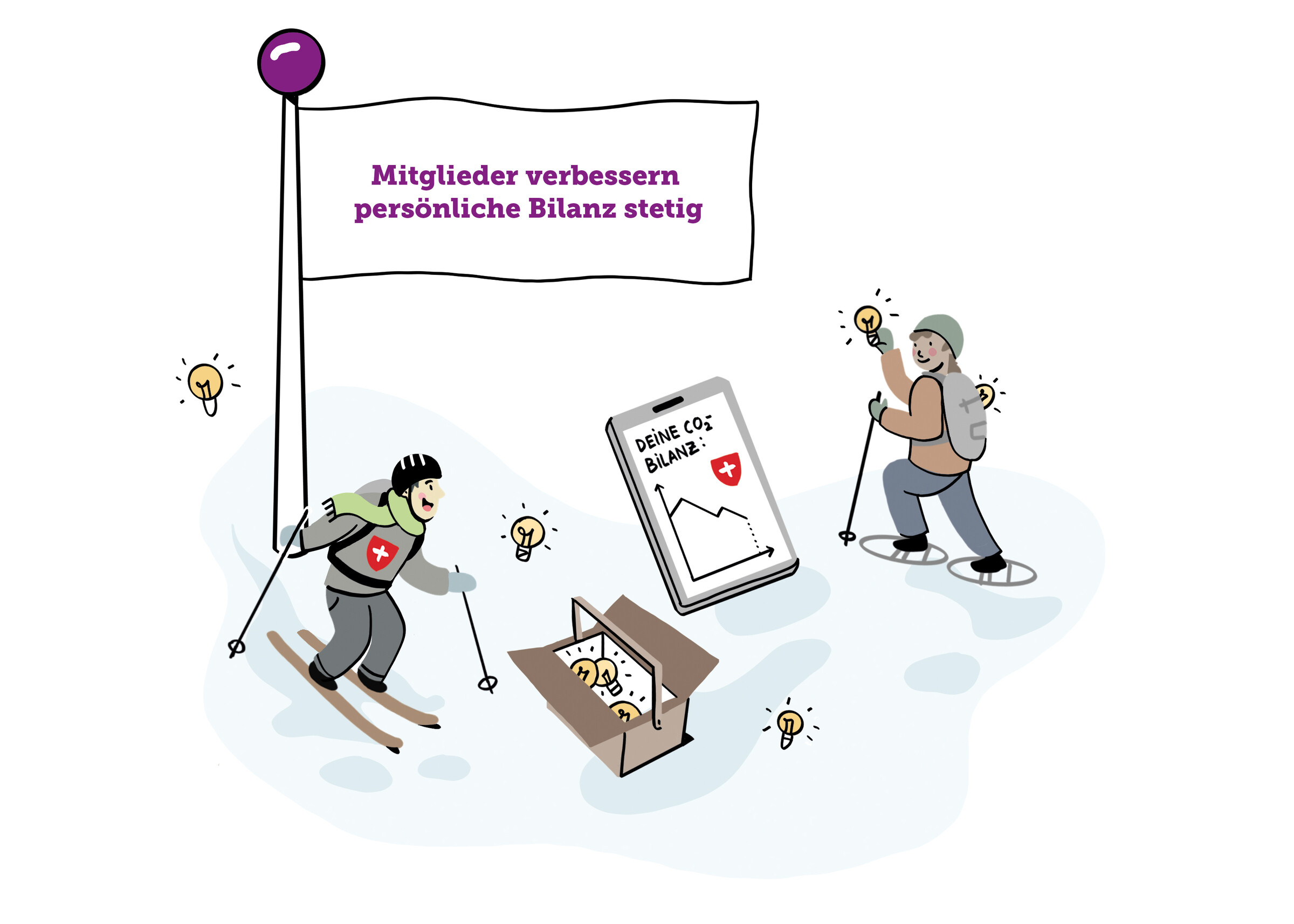 Das interaktive Wimmelbild veranschaulicht die drei Ebenen in Form verschiedener Bergstationen: Zentralverband, Gesamt-SAC und Bergsteiger-Community. Jede Station ist mit einer Fahne gekennzeichnet, die angeklickt werden kann, um Einblicke in Lösungsansätze und Maßnahmen zur CO₂-Reduktion bis 2040 zu erhalten. So wird der komplexe Weg zur Klimaneutralität auf spielerische Weise vermittelt. Das Wimmelbild lädt Bergsportbegeisterte dazu ein, sich aktiv mit dem Thema Nachhaltigkeit auseinanderzusetzen.