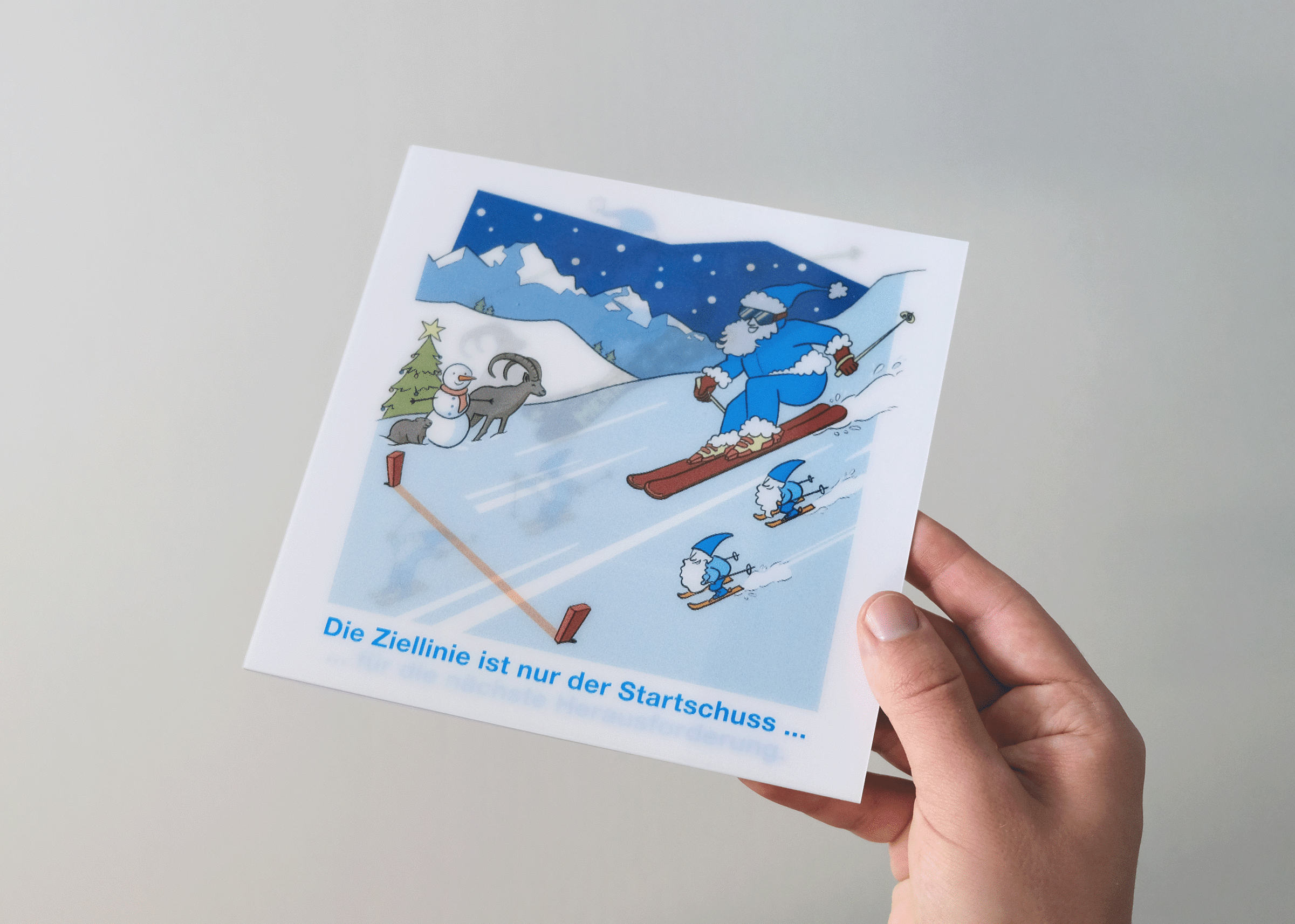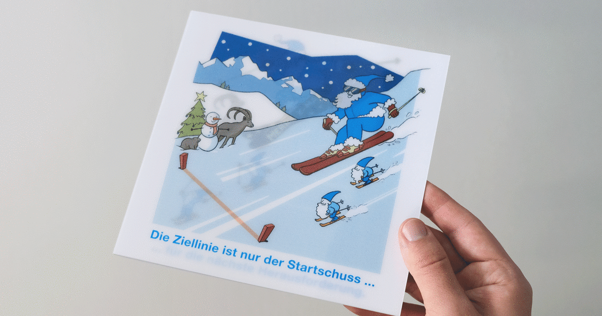 Die aktuelle Weihnachtskarte wurde mit dem Lentikular-Druckverfahren hergestellt. Durch Kippen erweckt man die Illustration zum Leben.