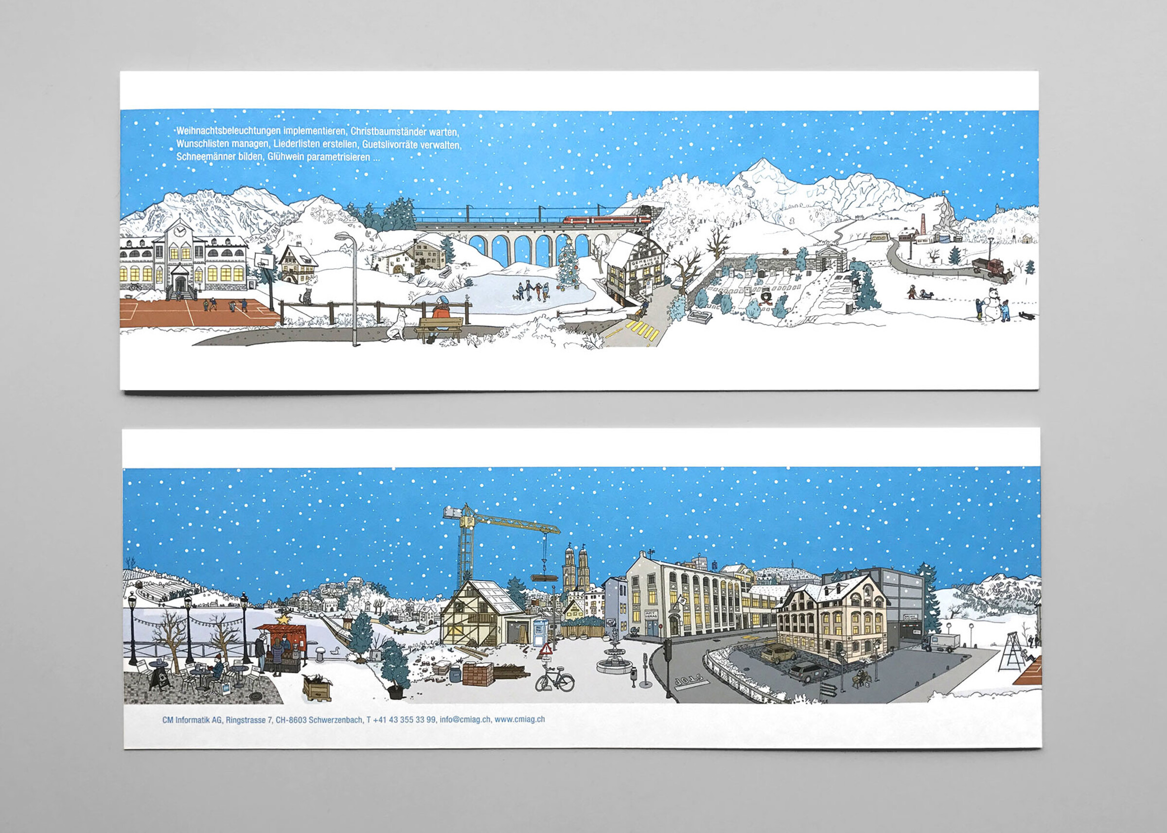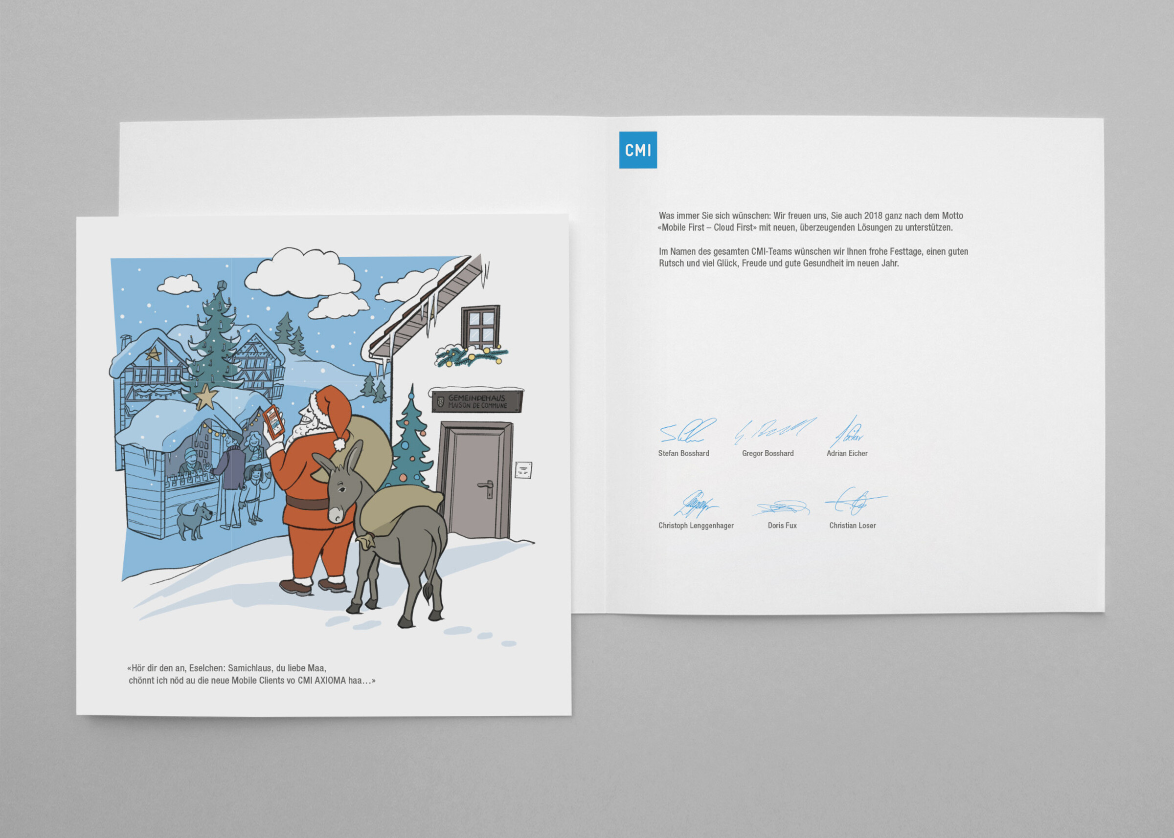 CM Informatik ist einer der führenden Anbieter in den Bereichen Geschäftskontrolle, Dokumenten- und Protokollverwaltung sowie Langzeitarchivierung für öffentliche Verwaltungen. Als Hausagentur haben wir für CMI in den letzten Jahren neben verschiedenen anderen Werbemitteln auch die Weihnachtskarten konzipiert und gestaltet.