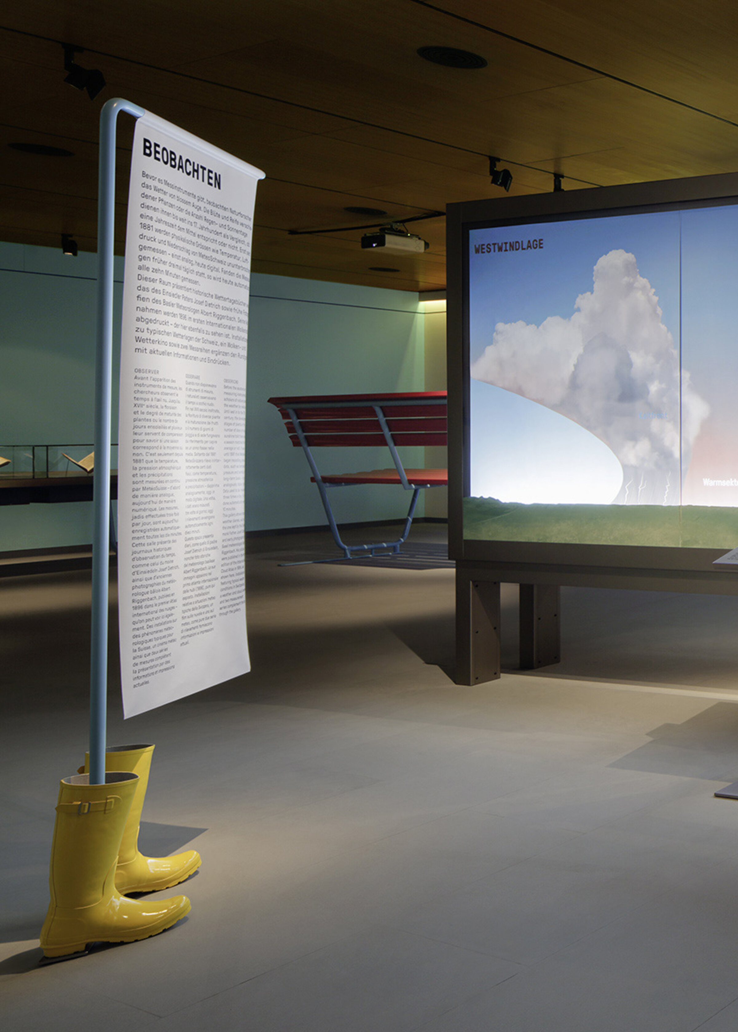 In Zusammenarbeit mit Bureau Hindermann entstand im Forum Schweizer Geschichte in Schwyz die neue Wechselausstellung «Das Wetter: Sonne, Blitz und Wolkenbruch». Die Ausstellung thematisiert das «Beobachten» und «Vorhersagen» des Wetters mit historischen Wettertagebüchern, Bauernkalendern und Messinstrumenten.