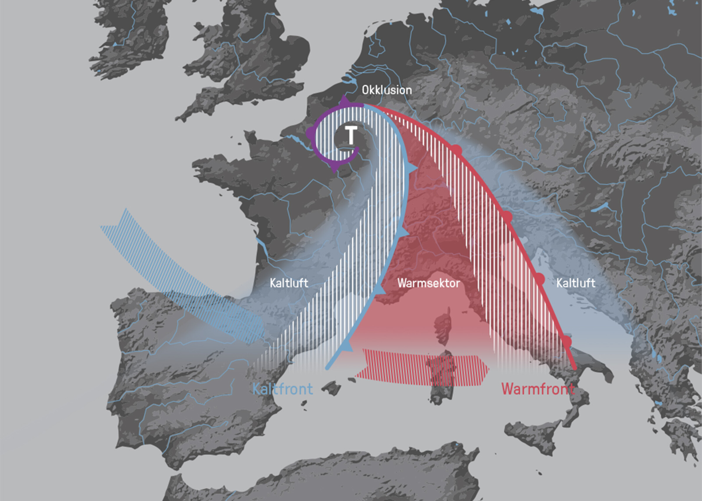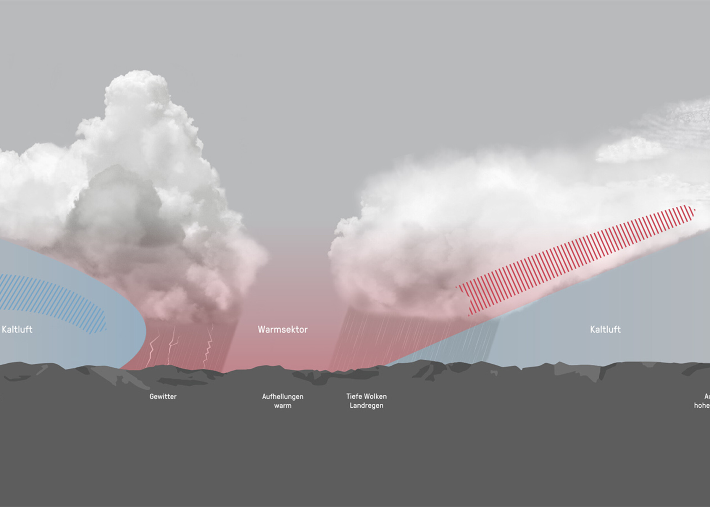 Zur Veranschaulichung des komplexen wissenschaftlichen Themas gestalteten wir klare Infografiken. Diese vermitteln die wichtigsten Aspekte der typischen Wetterlagen in der Schweiz auf spielerische Art und Weise.