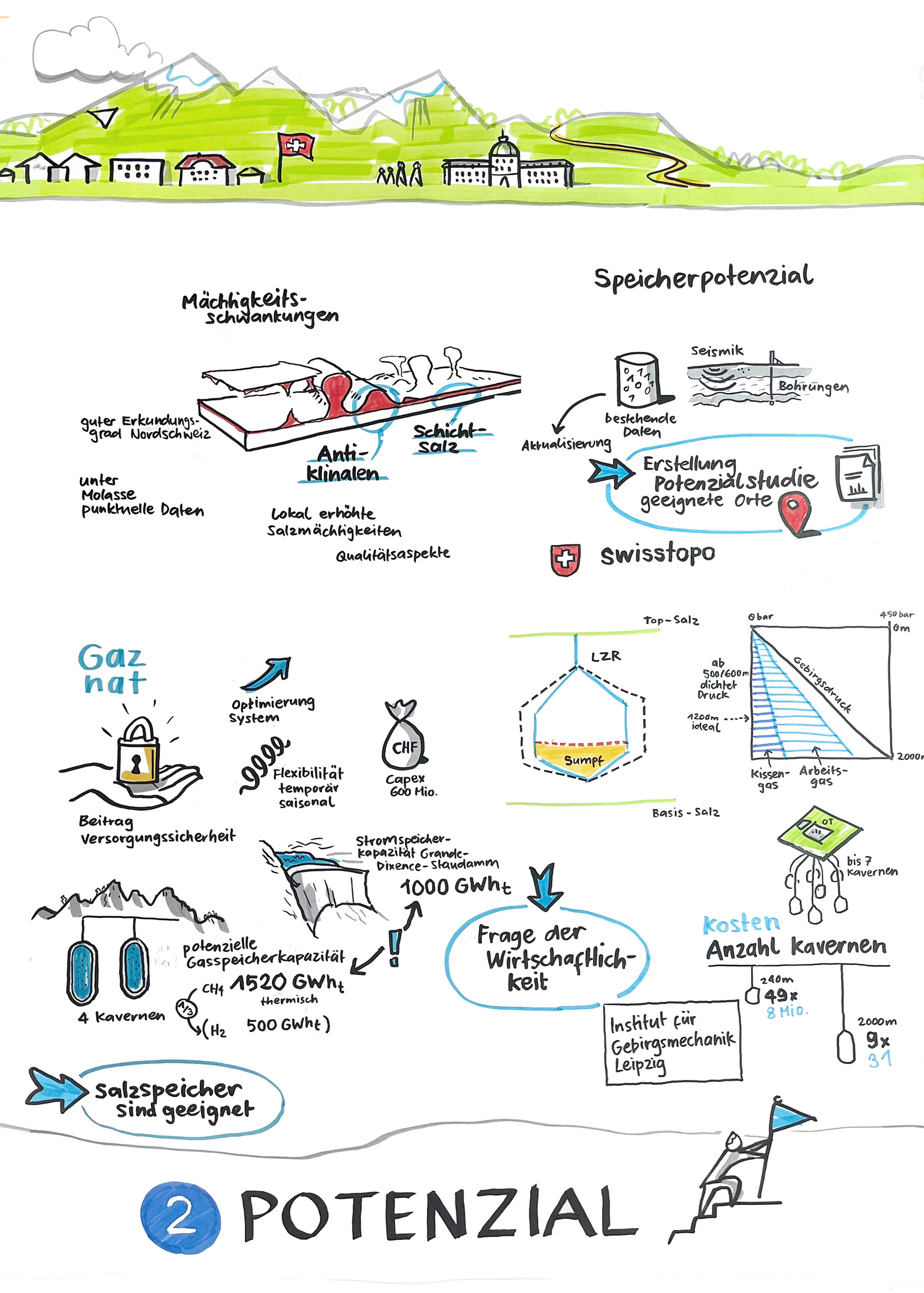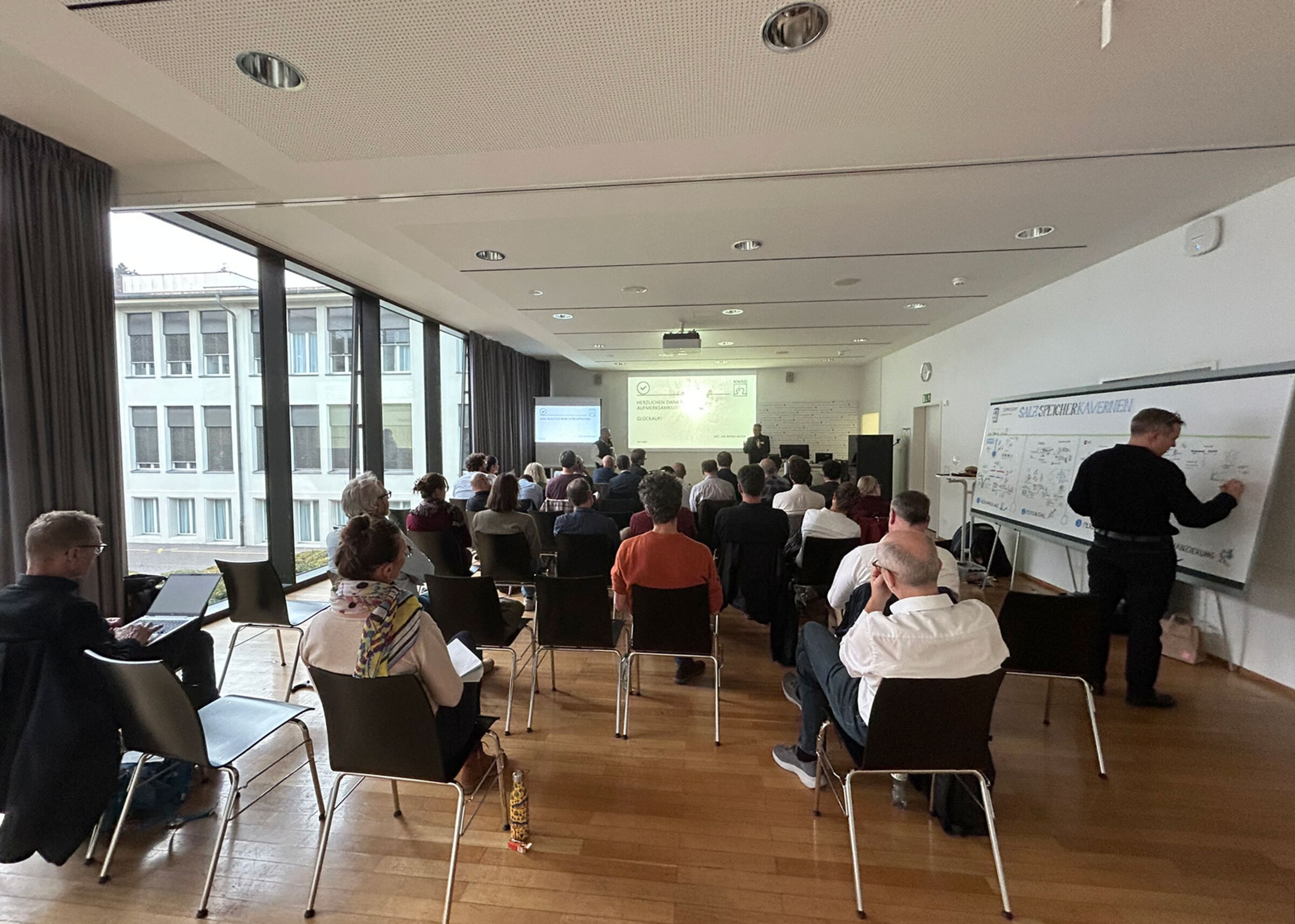 Das Symposium zu Speicherkavernen in Salzschichten wurde durch ein durchgehendes Graphic Recording von pikka begleitet, das die inhaltliche Tiefe sichtbar machte und den Austausch zwischen den Teilnehmenden unterstützte.